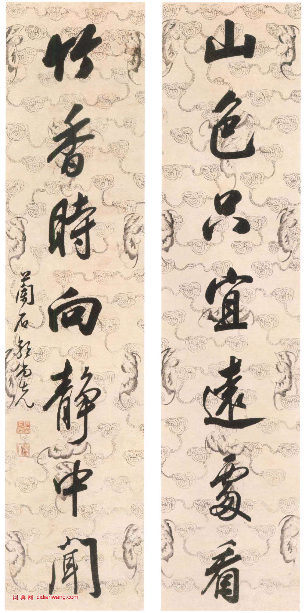 郭尚先《行書山色竹香七言聯》,紙本 ,123.2×28.2cm×2 ,上海博物館藏。