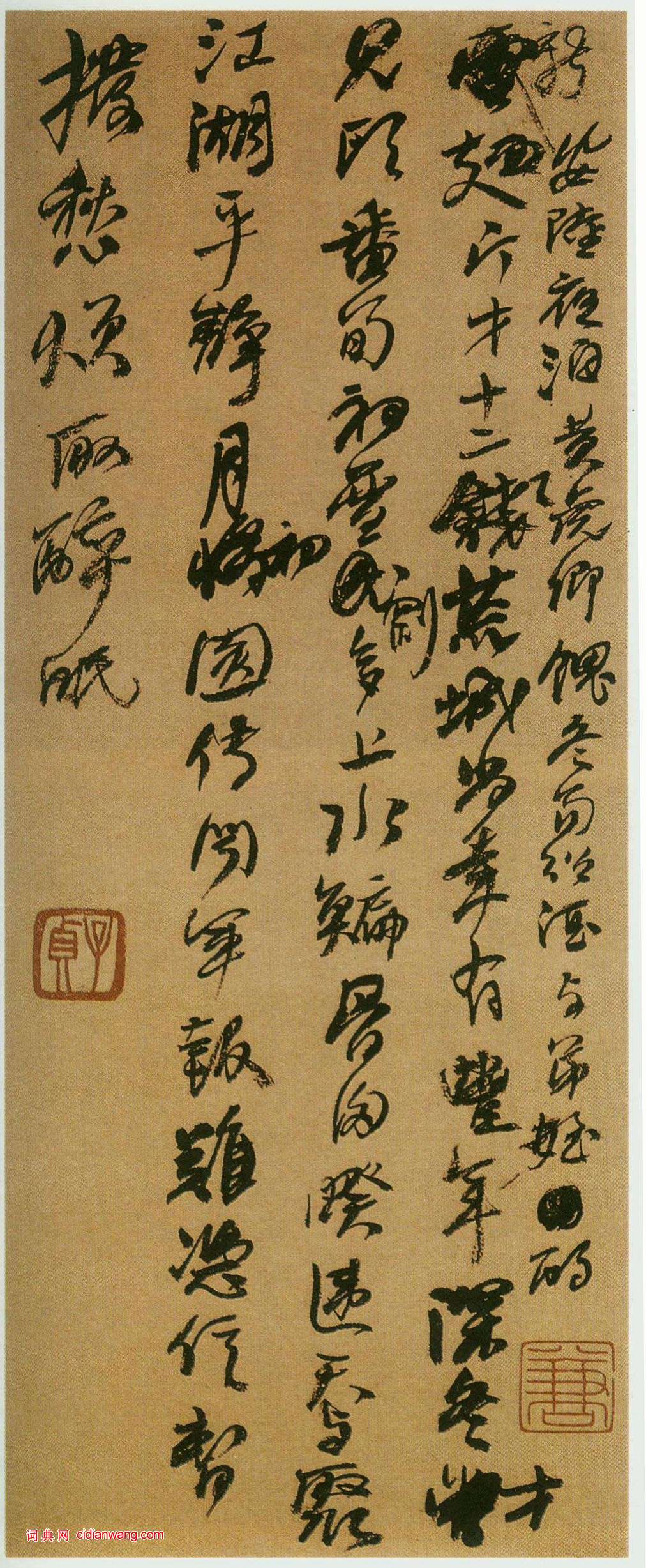 資源下載魏晉書法唐朝書法宋朝書法元朝書法明朝書法清朝書法近現代書法字典網>> 歷代書法>> 清朝>> 何紹基草書《詩稿》正文 何紹基草書《詩稿》作者:何紹基 書體:草書 何紹基草書《詩稿》,資料來自《中國書法家全集.何紹基》(河北教育出版社)2019-6-26 16:58:23 何紹基的相關書法作品:何紹基隸書《臨鄭固碑四條屏》 何紹基篆書《銅鼎文屏》 何紹基楷書《乘興濟世七言聯》 何紹基行書《小池隙地七言聯》 何紹基楷書《留得相於七言聯》 何紹基篆書《節錄庾信三月三日華林園馬射賦序四條屏》 何紹基行書《錄黃庭堅題伯時畫揩癢虎詩軸》 何紹基隸書《四面一尊七言聯》 何紹基《楷書四面一庭七言聯》 相關文章:郭天錫小楷《王獻之保母帖跋》 (小楷)郭天錫字佑之,號北山,曾為御史,今山西大同(雲中)人或作天水人,僑寓杭州,做居於...西漢隸書《馬王堆帛書》 (隸書)湖南省博物館藏 1973年在湖南長沙馬王堆三號漢墓出土。包括《戰國策縱橫家書》、...張瑞圖草書《李夢陽登高以雨留山寺七律扇面》 (草書)張瑞圖《書李夢陽登高以雨留山寺七律扇面》泥金箋本草書 17.8×54cm 上海...何紹基楷書《為樂去古八言聯》 (楷書)何紹基《楷書“為樂去古”八言聯》釋文:為樂及時令德無極,去古不遠直道在斯。蝯叟。...米芾《彥和帖》 (行草)【釋文】芾頓首啟。經宿。 尊候沖勝。山試 納文府。且看芭山。暫 給一視其背。即定...書法“永字八法”,你怎么看?關於“永字八法”的創始眾說紛紜。有的將“永字八法”向前推到崔瑗,這是不符合事實的...蘇軾行書《獲見帖 》《致長官董侯尺牘》 (行書)此帖又名《致長官董侯尺牘》。蘇軾書於元豐五年(1082)。紙本。行書,信札一則。...祝允明草書《前後赤壁賦》 (草書)祝允明草書《赤壁賦》,紙本,尺寸:縱31.1厘米,橫1001.7厘米,上海博物館...柯九思跋《褚遂良臨王獻之飛鳥帖》 (行書)柯九思跋《褚遂良臨王獻之飛鳥帖》,紙本,行書,台北故宮博物院藏。釋文:右褚河南臨...吳昌碩《篆書雪廬橫幅》 (篆書)吳昌碩《篆書雪廬橫幅》紙本篆書 34×104cm 1923年 西泠印社藏 釋文...