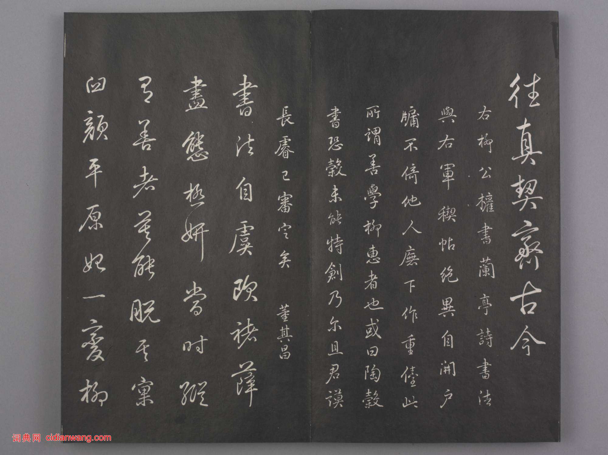 資源下載魏晉書法唐朝書法宋朝書法元朝書法明朝書法清朝書法近現代書法字典網>> 歷代書法>> 清朝>> 清拓《蘭亭八柱帖》乾隆弘曆臨董其昌仿柳公權書蘭亭詩(8)正文 清拓《蘭亭八柱帖》乾隆弘曆臨董其昌仿柳公權書蘭亭詩(8)作者:乾隆 書體:行書 首 頁 上一頁 1 2 3 4 5 6 7 8 全文2019-7-12 9:25:30 乾隆的相關書法作品:乾隆小楷臨《王羲之樂毅論》 乾隆行書《題王希孟千里江山圖卷》 乾隆行書《題董其昌關山雪霽圖》 乾隆行書《麥色詩軸》 乾隆行書題《董其昌自書告身卷》 乾隆行書《題蘇軾寒食帖》 乾隆行書《跋顏真卿祭侄文稿》 乾隆御筆《斗鹿賦》 乾隆行書《心經冊頁》 相關文章:弘仁行書《風雹雨作扇面》 (行書)弘仁《行書風雹雨作扇面》 上海博物館藏釋文:青空一瞬墨雲成,馳鶩騰驤幻突冥。谷里...李鱓·自書題畫詩 (行書)李鱓《自書題畫詩》,行書。柳公權楷書間架結構100法 (楷書)一法:四圍者,不可四周密閉。四面圍起的字四周不可密閉。二法:上包下者,內畫宜上縮...虞世南《孔子廟堂碑》 (楷書)《孔子廟堂碑》,為虞世南撰文並書寫,是其最著名的代表作。原碑立於唐貞觀七年(63...釋擔當《草書七絕詩軸》 (草書)釋擔當《草書七絕詩軸》紙本草書釋文:村遠人疏路又歧,怯寒全在小春時。不知煙柳緣何...梁漱溟《行書大地六時八言聯》 (行書)梁漱溟《行書大地六時八言聯》行書 1943年釋文:大地皆春龍天歡悅,六時恆吉日月...宋珏·題鮮于樞《韓愈送李願歸盤谷序卷》 (行書)【釋文】曾見吾家仲溫以章草書此序,頗脫筆墨習氣。今見鮮于困學手跡,又在仲溫之上。...王文治行書《致嘯崖書札》 (行書)王文治字禹卿,號夢樓。江蘇丹徒(今江蘇省鎮江市)人。十二歲便吟詩作書,詩有唐人風...褚遂良摹《王羲之小楷樂毅論》 (小楷)貞觀十二年(638),李世民視同師長的大書法家虞世南逝世,這使李世民感到特別的傷...祝允明·跋米芾《蜀素帖》 (行書)祝允明跋米芾《蜀素帖》,行書。現存台灣故宮博物院。祝允明跋米芾《蜀素帖》釋文:南...