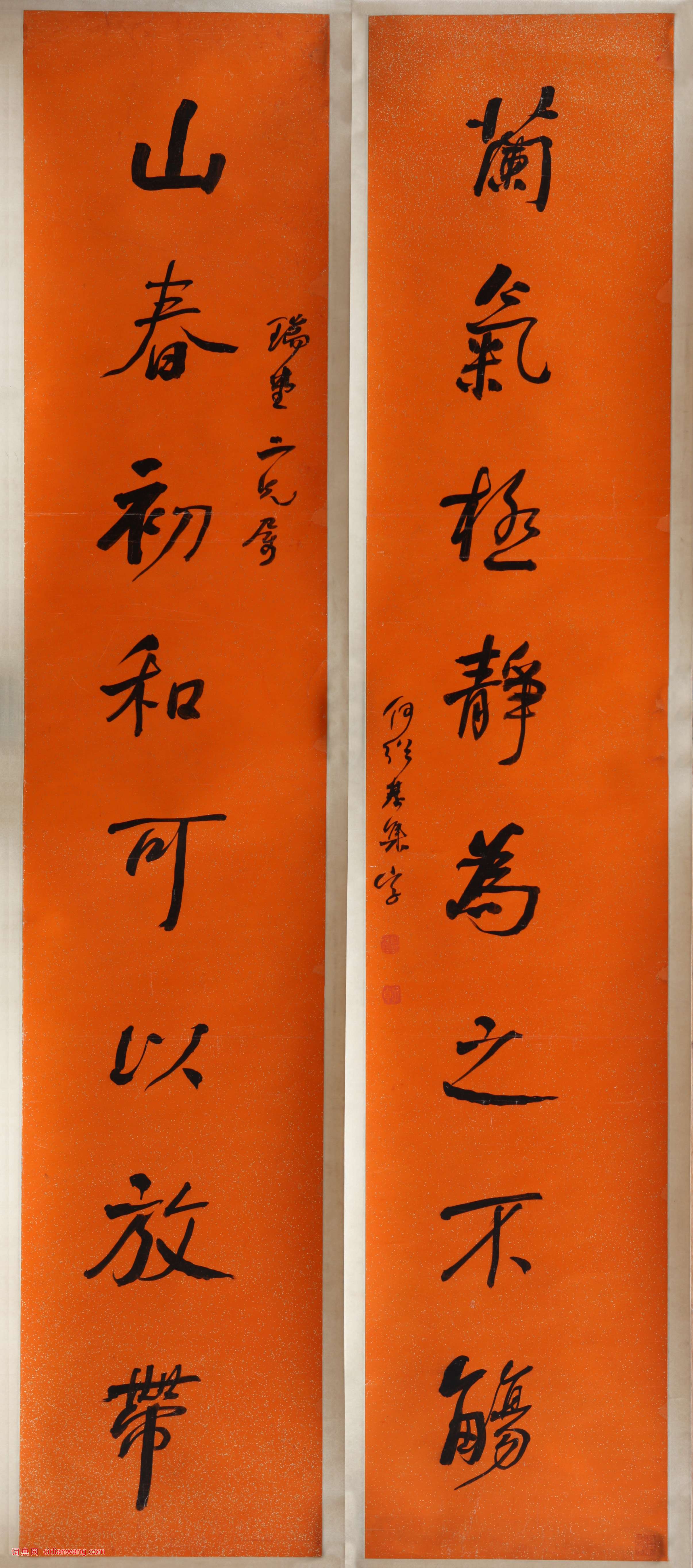 何紹基《行書山春蘭氣八言聯》,紙本,蠟箋行書 ,205.5×40.5cm×2 ,湖南省博物館藏。