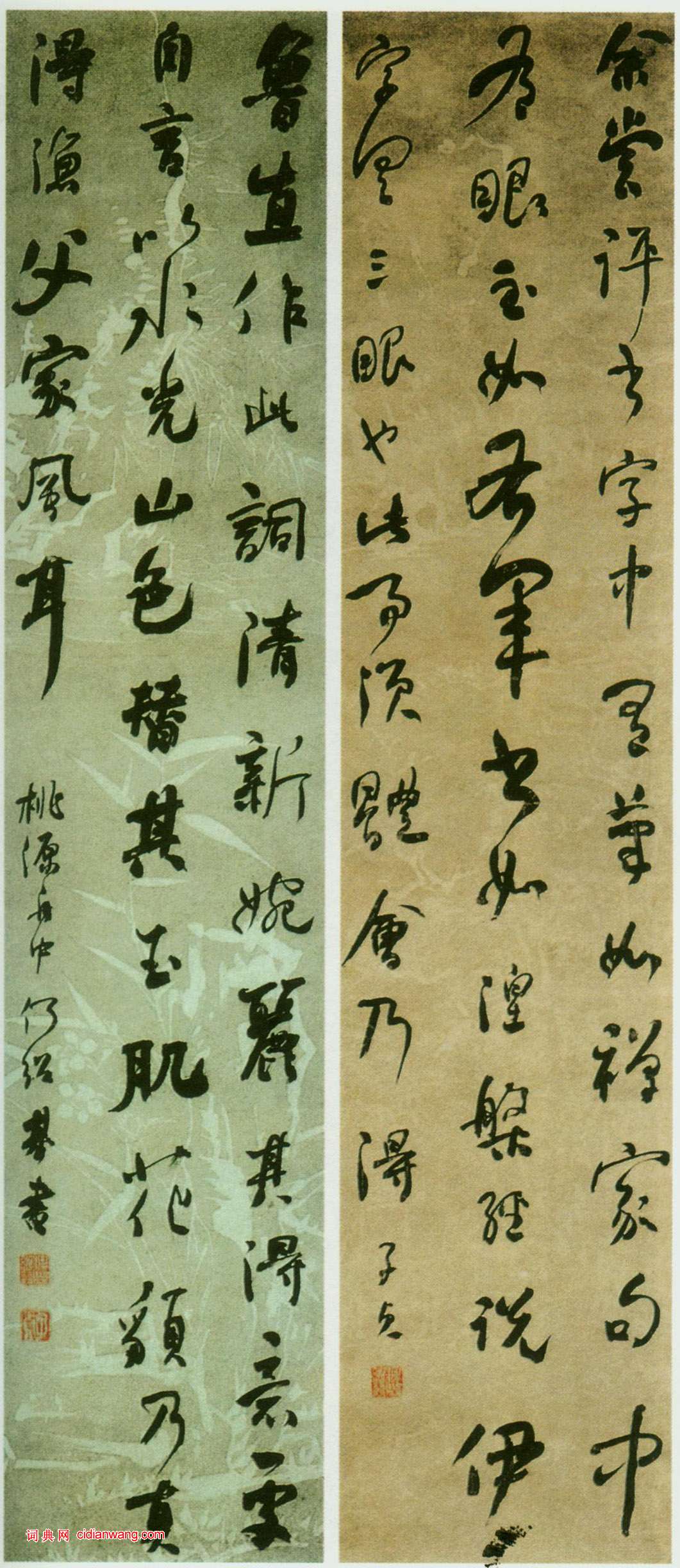朱耷《草書飯疏燒葉七言聯》紙本草書 120.8×28.4cm×2 台北故宮博...