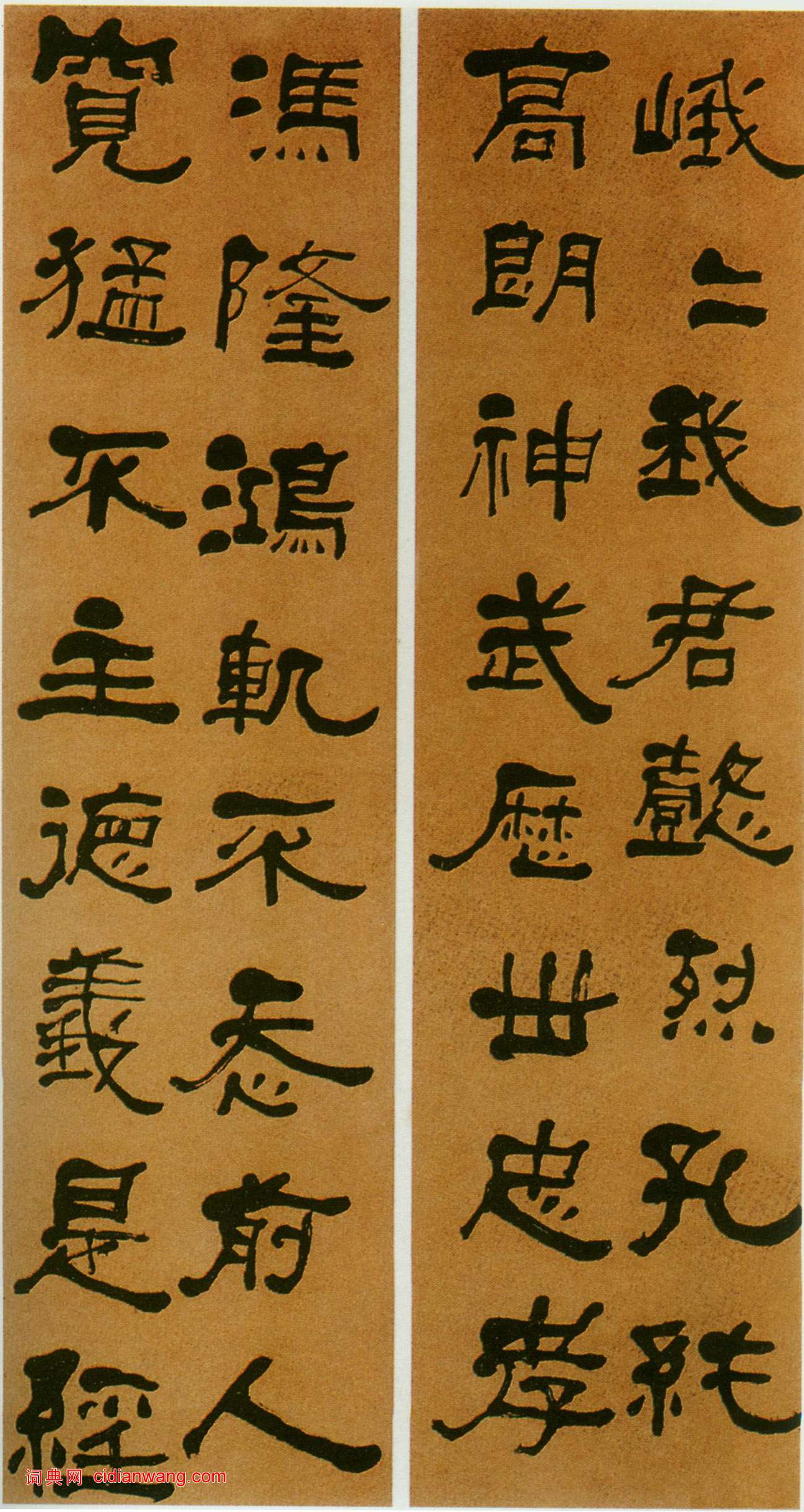 資源下載魏晉書法唐朝書法宋朝書法元朝書法明朝書法清朝書法近現代書法字典網>> 歷代書法>> 清朝>> 何紹基隸書《臨衡方碑四屏》正文 何紹基隸書《臨衡方碑四屏》作者:何紹基 書體:隸書 何紹基《臨衡方碑四屏》, 1869年, 128.8X32cmX4,資料來自《中國書法家全集.何紹基》(河北教育出版社)。2019-9-26 14:02:24 何紹基的相關書法作品:何紹基草書《重謁三蘇祠詩稿》 何紹基行書《蘇軾留別黃州雪堂詞》 何紹基《行書一亭幽室七言聯》 何紹基行書《如寫若納八言聯》 何紹基臨《張黑女墓誌》 何紹基行書《杜甫秦州雜詩二十首節選軸 》 何紹基《隸書軸》 何紹基草書《詩稿》 何紹基行書《錄蘇軾和文與可洋川園池三十首之蓼嶼詩軸》 相關文章:黃道周行書《洗心詩》 (行書)黃道周《洗心詩》 行書 日本藏釋文:塵垢辭虞夏,波瀾長布衣。花溪垂竹葉,砧杵靖...林散之《草書毛澤東清平樂會昌詞橫幅》 (草書)林散之《草書毛澤東清平樂會昌詞橫幅》 150×360cm 江蘇省美術館藏 釋文...蔡襄楷書《荔枝譜》 (楷書)蔡襄《荔枝譜》成書於1059年,書中曾列舉了數十種珍品荔枝,其中多數產自興化。《...米芾·逃暑帖 (行書)【釋文】芾頓首再啟。芾逃暑 山,幸茲安適。人生幻法,中□ 為虐而熱而惱。諺以貴□...黃輝《行書五律詩軸》 (行書)黃輝《行書五律詩軸》紙本行書 349.4×104cm 四川省博物館藏釋文:石髓...孫文楷書醒世格言 (楷書)釋文:夫天下之事,其不如人意者,固十常八九。總在能堅忍耐煩勞怨不避,乃能期於有成...東漢隸書《石門頌》 (隸書)《石門頌》全稱《漢司隸校尉楗為楊君頌》。又稱《楊孟文頌》。東漢建和二年(148年...胡問遂臨《張黑女墓誌》 (楷書)張黑女墓誌 全稱《魏故南陽太守張玄墓誌》,北魏普泰元年(公元531年)刻,為魏墓...全國第一屆書法篆刻展作品集-行書部分1980年5月,全國第一屆書法篆刻展覽(國展)在瀋陽展出,現與大家分享由人民美術...西漢敦煌漢簡 (草書)一九七九年在敦煌縣馬圈灣出土了大量漢簡,一千二百一十七枚,包括隸、草、行三種書體...