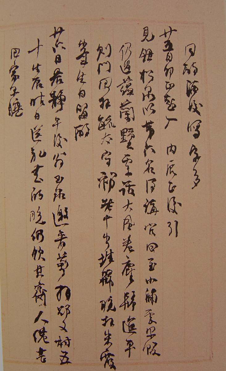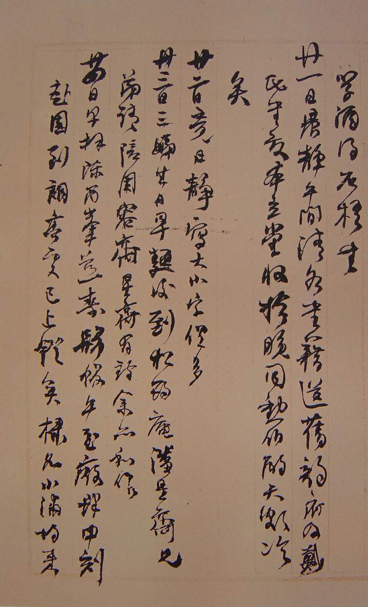 資源下載魏晉書法唐朝書法宋朝書法元朝書法明朝書法清朝書法近現代書法字典網>> 歷代書法>> 清朝>> 何紹基草書《種竹日記》(14)正文 何紹基草書《種竹日記》(14)作者:何紹基 書體:草書 首 頁 上一頁 10 11 12 13 14 15 16 17 18 19 下一頁 尾 頁 全文2019-9-26 17:17:16 何紹基的相關書法作品:何紹基隸書《交遊詩賦七言聯》 何紹基隸書《嘉言游好五言聯》 何紹基《臨禮器冊》 何紹基行書《澹香書屋橫披》 何紹基《篆書論書軸》 何紹基行書《蘇軾五言詩屏》 何紹基《枕湖草堂隸書匾》 何紹基篆書《金鐘翠竹七言聯》 何紹基楷書《安得壯哉七言聯》 相關文章:沈荃《行書臨爭座位帖軸》 (行書)沈荃《行書臨爭座位帖軸》綾本行書 238×50cm 天津博物院藏 【資料來源】...黃道周行草 《贈倪獻汝叔侄詩軸》 (行草)黃道周《贈倪獻汝叔侄詩軸》綾本行草 158.6×50.4cm 弘光元年(16...《敦煌曲子》殘稿 (楷書)《敦煌曲子》殘稿 法國巴黎國家圖書館藏 轉自《敦煌國際項目》IDP資料庫 敦煌曲...查昇《臨懷仁集王羲之聖教序》 (行書)查詹事臨聖教序查升《臨懷仁集王羲之聖教序》,行書, 海外華裔私人藏 釋文:略。 ...何紹基隸書《石勛費鳳別碑詩四屏》 (隸書)何紹基《隸書四屏》,節錄自石勛《費鳳別碑詩》,資料來自《中國書法家全集.何紹基》...陳洪綬行書《自書詩軸》 (行書)陳洪綬《自書詩軸》紙本 99.1×31.3cm 遼寧省博物館藏釋文:肉叫絲喧主...薩都剌楷書《題梅雀圖》 (楷書)薩都剌《題梅雀圖》 軸,楷書,絹本,水墨,64.6×32.9cm 台北故宮博物...毛奇齡《行書贈劉考功主文八閩之作七律詩軸》 (行書)毛奇齡《行書贈劉考功主文八閩之作七律詩軸》綾本 行書 161×45.8cm 天...柳公權楷書《劉沔神道碑》 (楷書)柳公權《劉沔神道碑》 楷書 大中2年(848) 12月全稱:“唐故光祿大夫守太子...趙孟頫行書《太湖石贊》 (行書)此帖是趙孟頫與好友相聚,一時酒酣的乘興之作。紙質瑩潤光滑,信手寫來,“神融筆暢”...