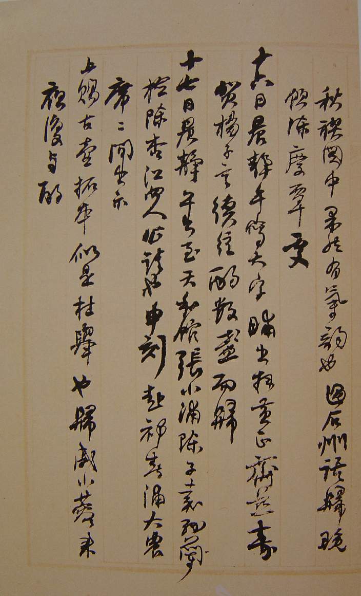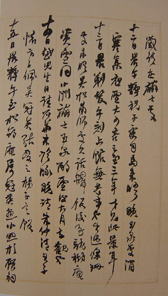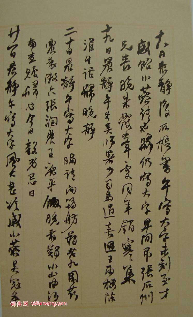 資源下載魏晉書法唐朝書法宋朝書法元朝書法明朝書法清朝書法近現代書法字典網>> 歷代書法>> 清朝>> 何紹基草書《種竹日記》(19)正文 何紹基草書《種竹日記》(19)作者:何紹基 書體:草書 首 頁 上一頁 15 16 17 18 19 20 21 22 23 24 下一頁 尾 頁 全文2019-9-26 17:17:16 何紹基的相關書法作品:何紹基題《西嶽華山廟碑》 何紹基行書《因山激水七言聯》 何紹基楷書《留得相於七言聯》 何紹基行書《山水兒童七言聯》 何紹基行書《詠落花七律十五章》 何紹基楷書《赤壁賦四條屏》 何紹基行書《苦雨奇晴詩稿冊》 何紹基行書《紅顆綠苞聯》 何紹基楷書《乘興濟世七言聯》 相關文章:米芾《晉紙帖》 (行草)【釋文】此晉紙式也,可為之。越竹千杵裁出,陶竹乃腹不可杵,只如此者乃佳耳。老來失...周天球行書《致白間尊先生尺牘》 (行書)周天球《致白間尊先生尺牘》,紙本,行書,尺寸:24.7×10.8cm、24.7...王鐸《京中春日留蘇州友人作五律》立軸 (行書)王鐸行書《京中春日留蘇州友人作五律》立軸,美國紐約楊思勝私人收藏 釋文:汝欲蛇門...三國《天發神讖碑》拓本 (隸篆)《天發神讖碑》三國吳天璽元年(276年)刻,是吳最後一位君主孫皓因天降符瑞而立碑...全國第一屆書法篆刻展覽-篆刻作品1980年5月,全國第一屆書法篆刻展覽(國展)在瀋陽展出,現與大家分享由人民美術...倪瓚小楷《與茂實札》 (小楷)倪瓚《與茂實札》紙本小楷 27.5×26.5 cm 嘉德2011秋季拍賣會釋文...內藤虎次郎題《蘇軾寒食帖》 (楷書)內藤虎次郎題《蘇軾寒食帖》,楷書,台北故宮博物院藏。釋文:蘇東坡黃州寒食詩。引首...龐中華硬筆行書字帖《怎樣練習鋼筆行書字》 (行書)怎樣練習鋼筆行書字?青少年朋友:當你每天手握鋼筆寫字的時候,多么希望能寫得好,寫...鄧散木《書法百問》鄧散木|(1898-1963),現代書法家、篆刻家。1898出生於上海,原名菊初...王鐸行書《為嗇道兄書詩》 (行書)王鐸行書作品《為嗇道兄書詩》卷,綾本,自作詩五律兩首,凡四十一行,共一百二十四字...
