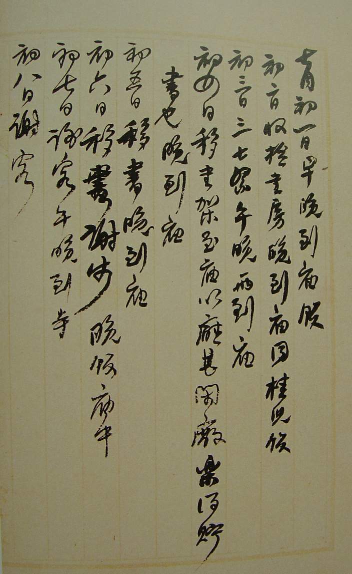 資源下載魏晉書法唐朝書法宋朝書法元朝書法明朝書法清朝書法近現代書法字典網>> 歷代書法>> 清朝>> 何紹基草書《種竹日記》(45)正文 何紹基草書《種竹日記》(45)作者:何紹基 書體:草書 首 頁 上一頁 40 41 42 43 44 45 46 47 48 49 下一頁 尾 頁 全文2019-9-26 17:17:16 何紹基的相關書法作品:何紹基行書《七絕軸》 何紹基篆書《節錄庾信三月三日華林園馬射賦序四條屏》 何紹基《行書手札》 何紹基行書《杜陵韓子七言聯》 何紹基臨《張黑女墓誌》 何紹基《楷書“讀書延年”橫幅》 何紹基行書《荊浩廬山圖軸》 何紹基行書《郡不產谷行書軸》 何紹基行書《鍊句心似七言聯》 相關文章:蔡卞·唐玄宗鶺鴒頌題跋 (行書)蔡卞《唐玄宗鶺鴒頌題跋》,行書, 縱24.8cm 。台北故宮博物院收藏。釋文:唐...臨摹字帖,寫多大合適?網友:書法君您好!我想問一下,臨摹書譜時能寫成碗口那么大的字嗎?謝謝!問安!書法...老舍·華世奎 《南皮張氏兩烈女碑》拓片提字 (楷書)釋文:華世奎字璧臣祖籍江蘇無錫世居天津自幼勤學三十歲中舉同年步入仕途出任內閣閣丞...阮元《隸書含和年豐八言聯》 (隸書)阮元《隸書含和年豐八言聯》絹本隸書 113×28.5cm 1843年 山西省博...劉墉《草書臨古軸》 (草書)劉墉《草書臨古軸》絹本草書 124.5×61cm 湖南省博物館藏 釋文:知有漢...文徵明行書《右書成蒙恩賜襲衣銀幣作扇面》 (行書)文徵明行書詩扇面,金箋,尺寸:18×51.5cm,上海道明拍賣有限公司2006...李元度《致力臣札》 (行書)《李元度致力臣札》行書,中主要談到詳查《褒忠錄》所需查人員之事,反映出李元度這位...趙孟頫行書《七絕詩冊》 (行書)趙孟頫《七絕詩冊》,紙本,行書,縱34.7cm,橫35.3cm。 北京故宮博物院...王文治行書跋《俞和臨定武本蘭亭》 (行書)王文治跋《俞和臨定武本蘭亭》,清,行書,紙本,縱26.7cm,北京故宮博物院藏。...嚴嵩楷書大高殿牌坊橫額 (楷書)大高玄殿,位於故宮西北側,東臨景山,西近北海,南面為故宮筒子河,北面為陟山門及御...