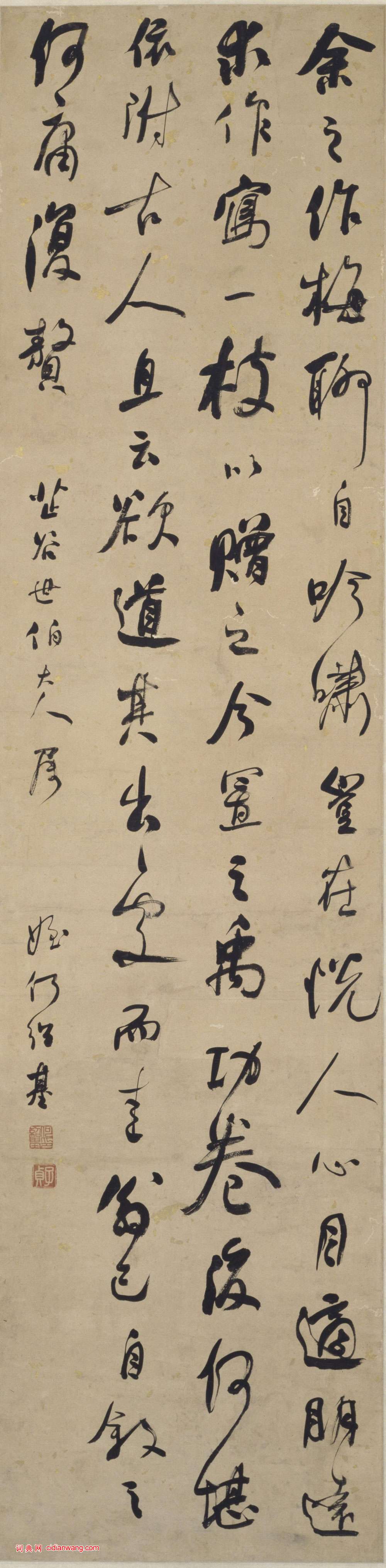余之作梅聊自吟嘯,豈在悅人心目。適朋遠求作,寫一枝以贈之。今置之禹功卷後,何堪依附古人。且雲欲道其出處而圭翁已自敘之,何庸復贅。 芷谷世伯大人屬。侄何紹基。