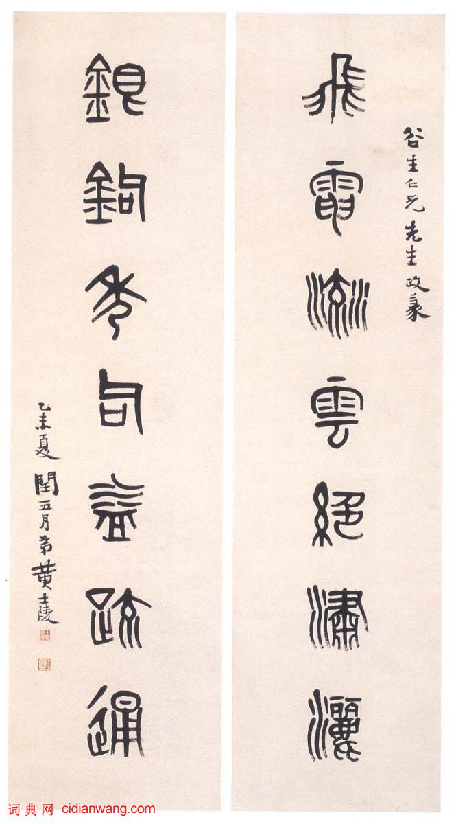 2017-09-16 19:00:13達受《篆書唯大是真七言聯》