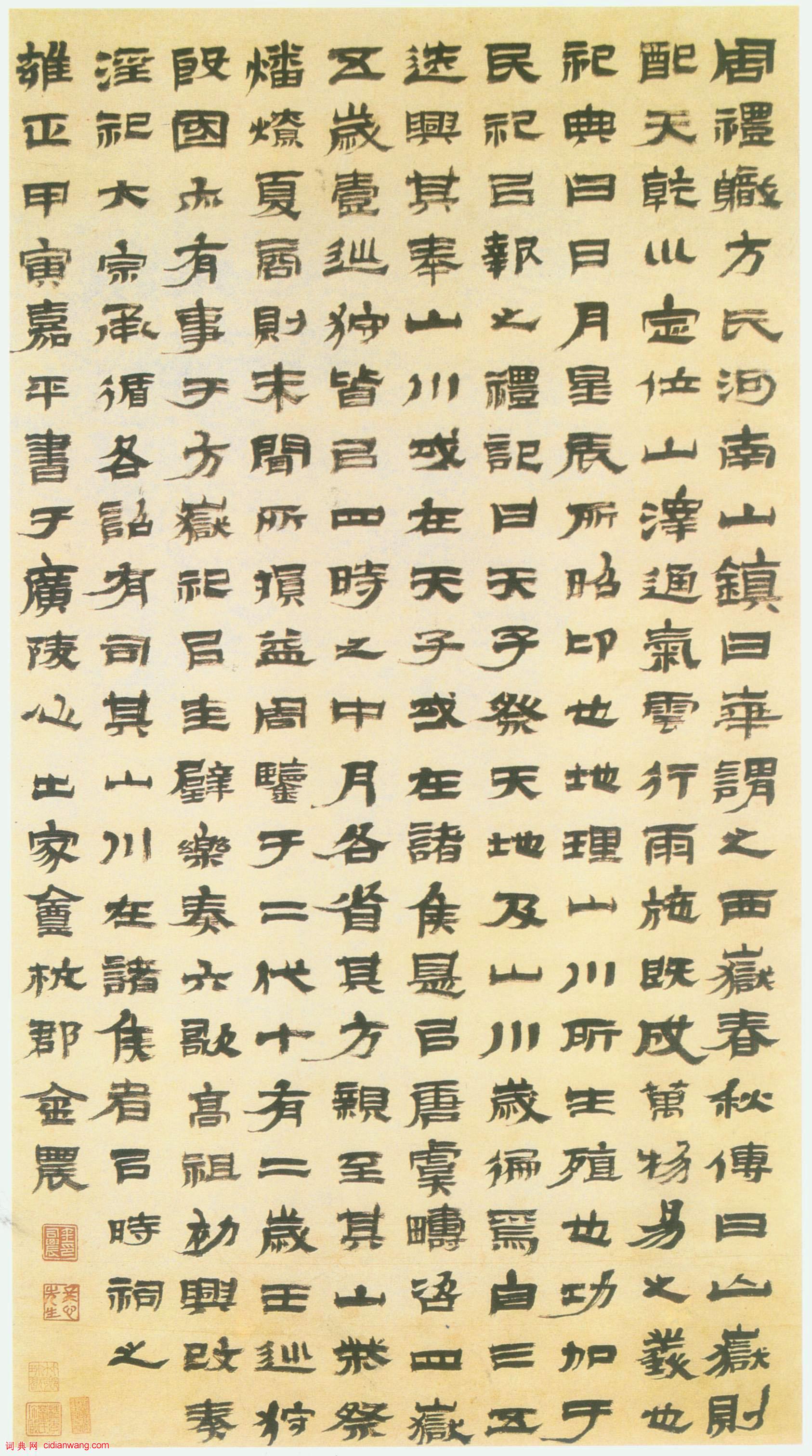 金農《隸書周禮職》,紙本, 1734年作, 縱102.1厘米, 橫56.5厘米, 書於1734年(雍正十二年),廣東省博物館藏。
