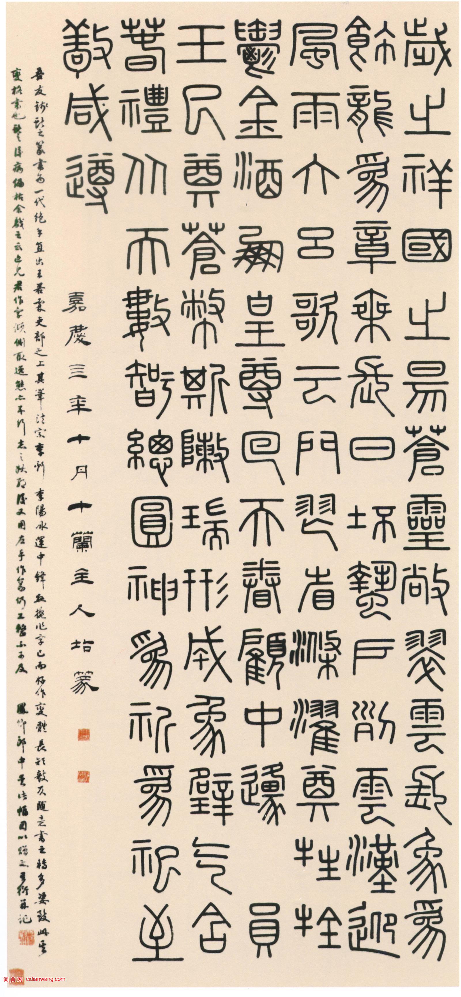 錢坫《篆書節錄隋書軸》 ,紙本,篆書, 125.5×56.8cm ,1799, 北京故宮博物院藏。
