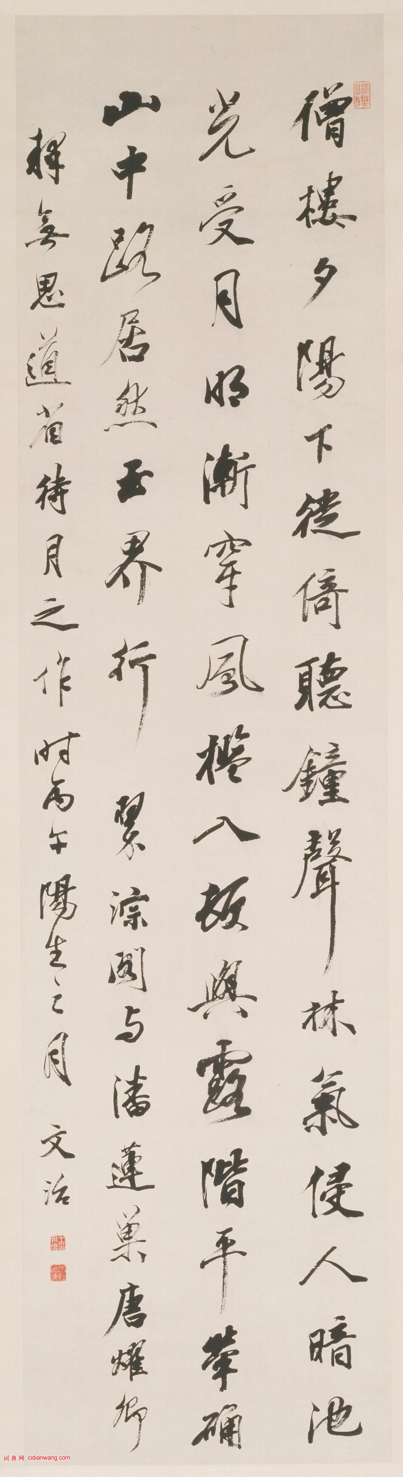 王文治《待月之作》,紙本,行書 ,129.8×45.2cm ,乾隆五十一年(1786年),北京故宮博物院藏。
