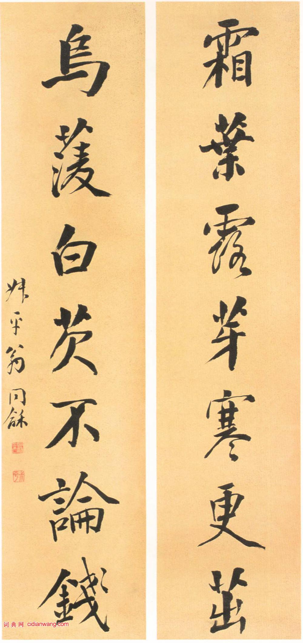 翁同龢行書《霜葉露芽寒更茁七言聯》