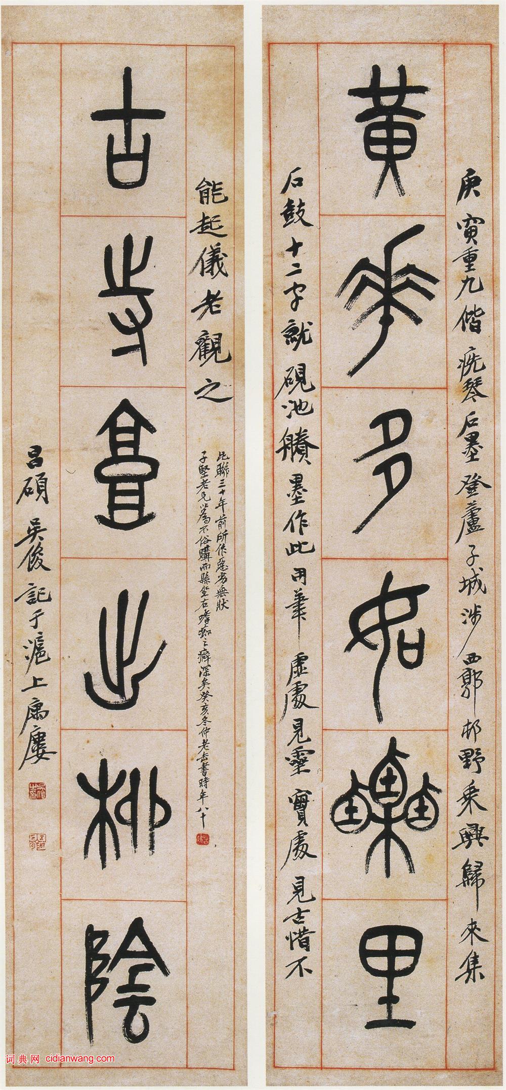 孫星衍篆書《粉署清名題柱蚤七言聯》