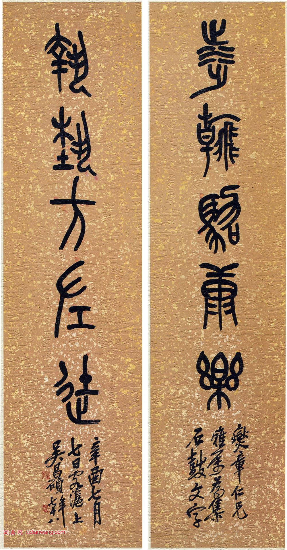 吳昌碩篆書《涉翰駕康樂五言聯》