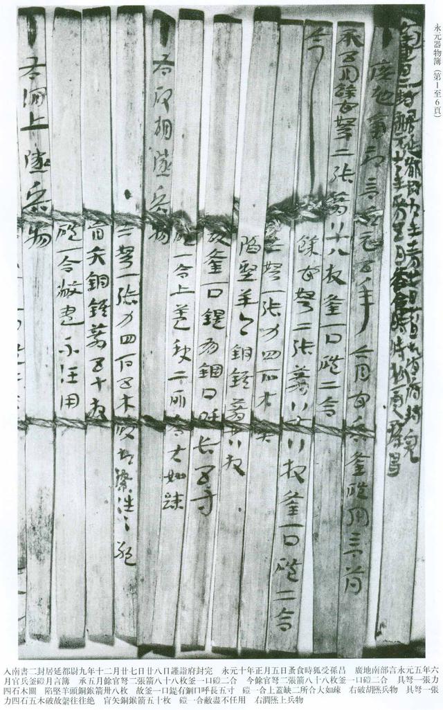 《永元器物簿》全冊長91厘米,是目前發現保存編聯最長的簡冊。現藏台灣省“中央研究院”。