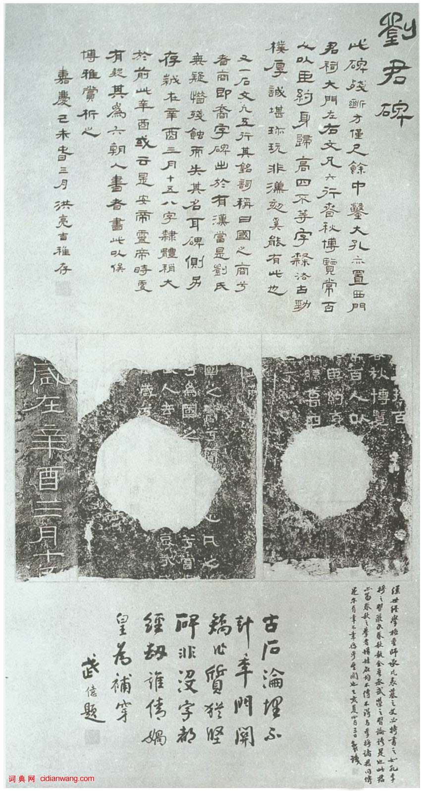書法欣賞魏晉書法唐朝書法宋朝書法元朝書法明朝書法清朝書法近現代書法字典網>> 歷代書法>> 秦漢>> 東漢《劉君殘碑》拓片正文 東漢《劉君殘碑》拓片作者:不詳 書體:隸書 東漢《劉君殘碑》拓片,東漢光和四年(181),發現於安陽縣豐樂鎮西門豹祠內。今存安陽市文化館。相關文章:傅山《行草書七絕一首》 (行草)傅山《行草書七絕一首》綾本立軸 185×51cm 福建博物院藏 釋文:乾是詩...王時敏隸書《錄東坡語軸》 (隸書)王時敏《隸書錄東坡語軸》紙本隸書 72.5× 50.5cm 美國弗利爾美術館藏...張雨·次韻天鏡上人送柑詩帖 (行書)張雨《次韻天鏡上人送柑詩帖》,紙本,26.5×29.4cm,無紀年。北京故宮博...趙孟頫行書《萬年歡曲》 (行書)趙孟頫書法欣賞行書《萬年歡曲》卷,紙本,書於1314年,27.5*144厘米,是...陳鴻壽·隸書六言聯 (隸書)結德言而為佩,援雅範以自綏。蔡襄《京居帖》 (行草)【釋文】襄啟:去德於今,蓋已*(氵存)歲。京居鮮暇,無因致書,第增馳系。州校遠來...奚岡《隸書傅玄席銘橫幅》 (隸書)奚岡《隸書傅玄席銘橫幅》紙本隸書 114×150cm 安徽省博物館藏款署:鶴渚...羅天池·跋裴寬《秋郊散牧圖》 (楷書)羅天池跋裴寬《秋郊散牧圖》,楷書。大都會藝術博物館藏。笪重光行書《宇記憶體知己五言詩扇面》 (行書)笪重光《行書“宇記憶體知己”五言詩扇面》頁 上海博物館藏釋文:?(宇)記憶體知己,相...姚鼐《行草高齋西面七言詩軸》 (行草)姚鼐《行草高齋西面七言詩軸》紙本行草書 82.6×37.4cm 湖北省博物館藏...