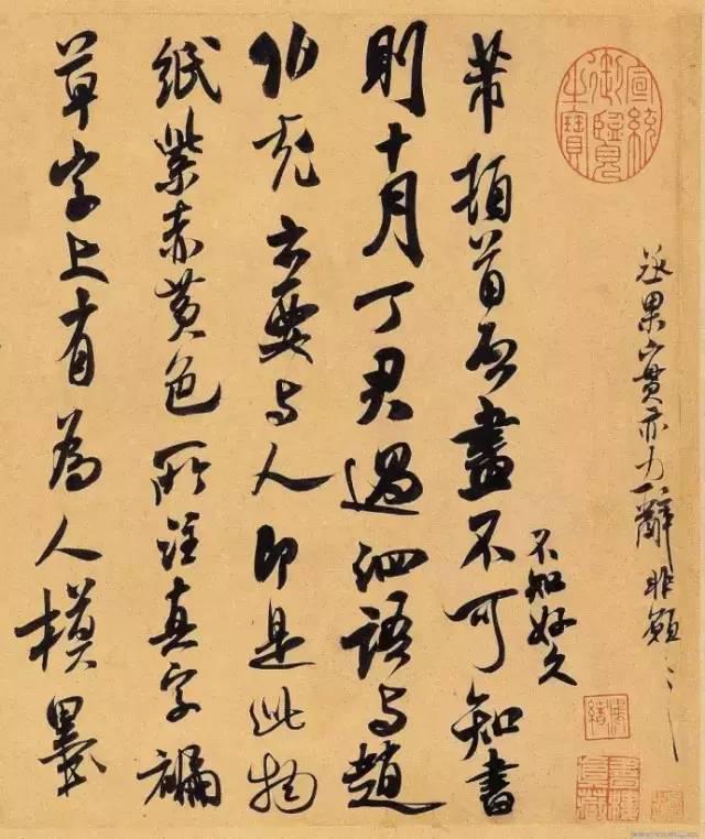 趙孟頫跋楊凝式《夏熱帖》 釋文:楊景度書出於人知見之表,自非深於書者,不能盡識也...