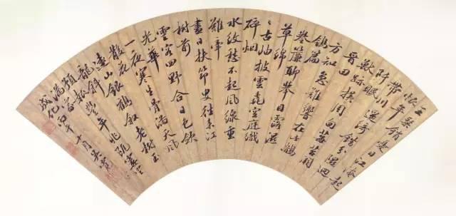 扇面精緻小巧,融藝術性和實用性為一體,適合觀賞把玩。扇面一般有摺扇和團扇之分。摺扇由於上寬下窄,在章法處理上要錯落有致,因勢成形。常見的處理方式有長短式、平展式、分段式、格景式等等。