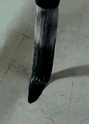 因此,你要注意起筆時筆尖與行筆到線條中段時,這兩處的夾角,有沒有調鋒的需要。再複雜點,收筆、轉折、提按時中鋒與側鋒的變化...