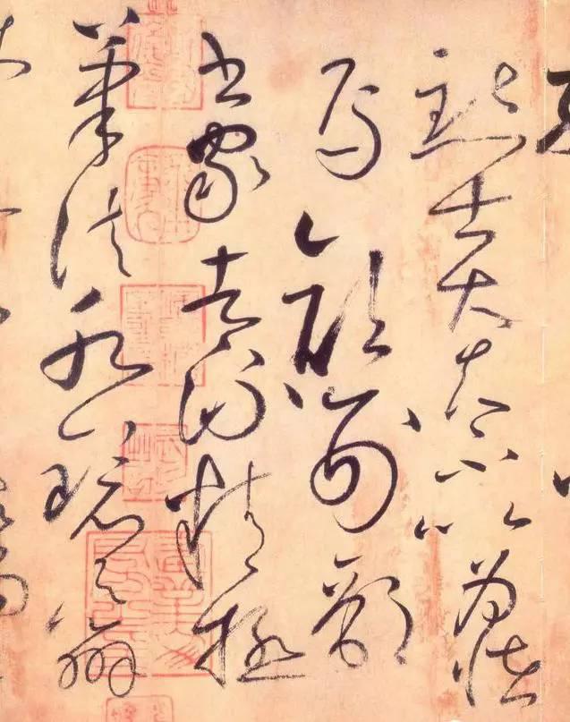 自左上空側筆取勢,入紙右轉筆,再左轉飛掠而出;空中迴轉取勢,右上空側筆入紙,右上行進,斷然折筆左下行進,折筆向上、再向右下,再折筆向右上,渴筆引帶,再折筆下行,再轉筆、折筆,再左轉,帶出寫一個字。