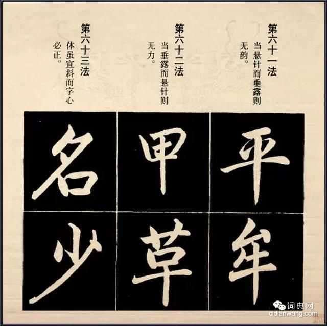 62,當垂露而懸針,則無力 當垂露的若懸針,則顯得無力。如:卓、單