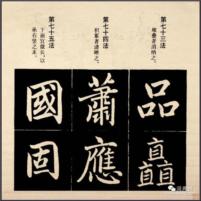 74,積累者,清晰之 由下而上堆積起來的字,筆畫要合理安排,伸縮有度,繁而不亂。如:糜、零、靡