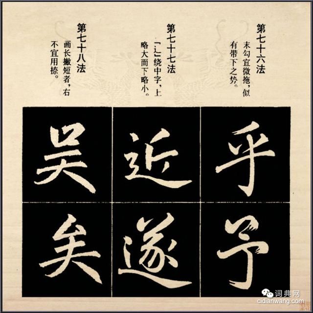 78,畫長撇短者,右不宜用捺 橫長撇短的字,右邊不宜用捺而用反捺(長點)。如:矢、契 、莫