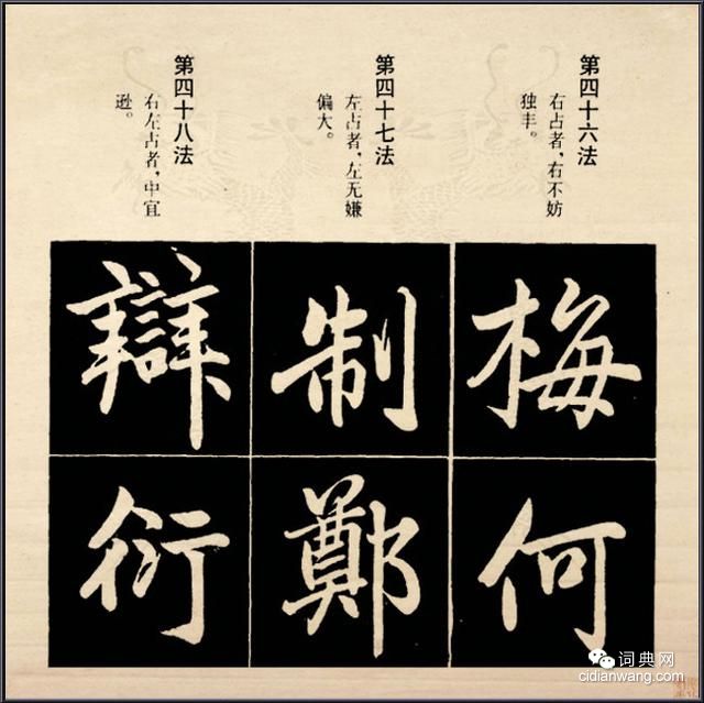 48,左右占者,中宜遜 以左右為主的字,中間宜小。如;弼、辯、衍、仰