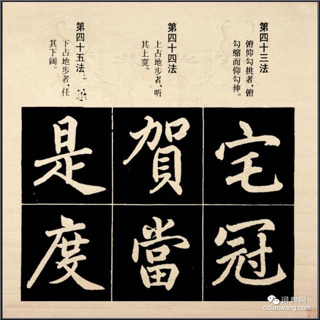 44,上占地步者,聽其上寬 以上部為主的字,應讓上邊寬。如:普、皆、齊