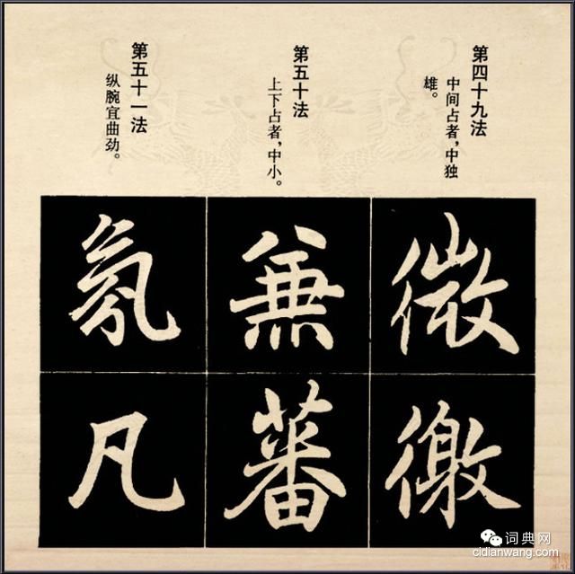 50,上下占者中小 以上下為主的字,中間應小。如:鶯、寡