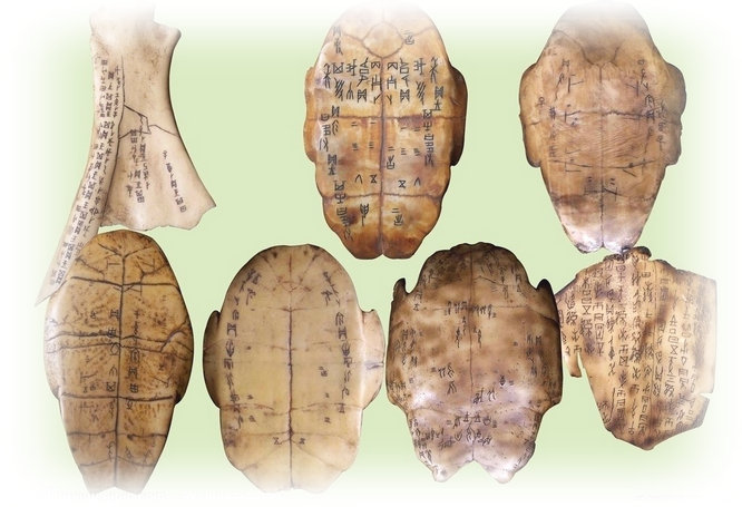 甲骨文是指殷商時期刻在龜甲和獸骨上的文字。甲骨文多用刀刻成,有先書後刻和以刀代筆直接刻寫兩種形式。從書法的角度分析,它已經具備了書法的用筆、結字、章法三要素。傳世的甲骨文中有朱書和墨書的痕跡,並且筆畫有彈性,應當是由類似毛筆的工具書寫而成的。