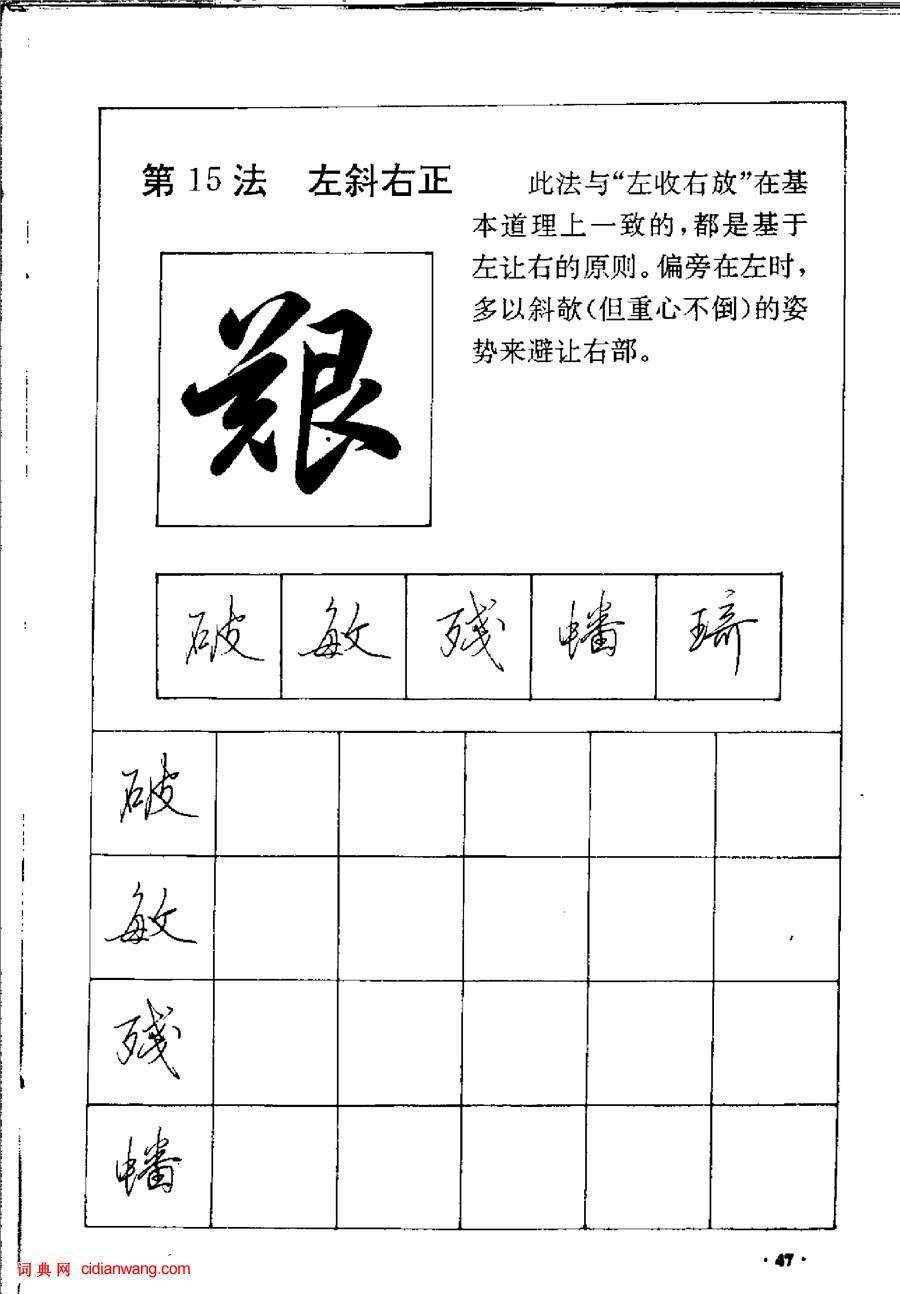 書法欣賞魏晉書法唐朝書法宋朝書法元朝書法明朝書法清朝書法近現代書法字典網>> 歷代書法>> 書法教程>> 田英章硬筆行書間架結構28法(8)正文 田英章硬筆行書間架結構28法(8)作者:田英章 書體:行書 首 頁 上一頁 4 5 6 7 8 9 10 11 12 13 下一頁 尾 頁田英章的相關書法作品:田英章楷書《百家姓》 田英章《解析歐體楷書結構28法》 田英章硬筆書法基礎教程 動態圖 田英章《大楷九成宮醴泉銘》 田英章硬筆楷書間架結構28法 田英章楷書《滕王閣序》 田英章楷書《九成宮》描紅本字帖 田英章異體字大全 田英章楷書《顏氏家訓》 相關文章:司馬垔·跋范仲淹《道服贊》 (行書)【釋文】予嘗謂士君子能為光明俊偉之事業必先有高潔灑落之胸次為之地也範文正道服贊所...歐顏柳趙,楷書入門怎樣選?楷書四大家是對書法史上以楷書著稱的四位書法家的合稱,也稱四大楷書。他們分別指是:...文徵明草書《湖光披素練詩卷》 (草書)文徵明草書《湖光披素練詩卷》,紙本墨跡,書於世宗嘉靖八年(1529年),時年60...陳奕禧《行書詩卷》 (行書)陳奕禧《行書詩卷》,香港藝術館虛白齋藏。蔡襄行楷《虛堂詩帖》 (行楷)蔡襄《虛堂詩帖》 1048年 紙本 22.6cm X16cm 藏故宮博物院。帖...陳鵬年《行書七絕詩軸》 (行書)陳鵬年《行書七絕詩軸》紙本行書 116×56cm 淮安市博物館藏釋文:楚雲西望...文徵明行書《張一川小傳》 (行書)明代文徵明行書作品欣賞《張一川小傳》,卷尾自識『嘉靖己未二月既望』。按其自署年紀...顏真卿書《顏勤禮碑》碑拓對照《唐顏真卿書顏勤禮碑》是顏真卿晚年所書,其書法藝術已進入完全成熟時期。通篇氣勢磅...王羲之集字春聯32對《王羲之集字春聯32對》主要集自天下第一行書《蘭亭序》,最最佳化還原書聖書法風貌與...王穉登·義興雜詩冊 (行書)王穉登《義興雜詩》冊,紙本,縱二四點八厘米、橫一五點二厘米,計二五頁,每頁四行,...