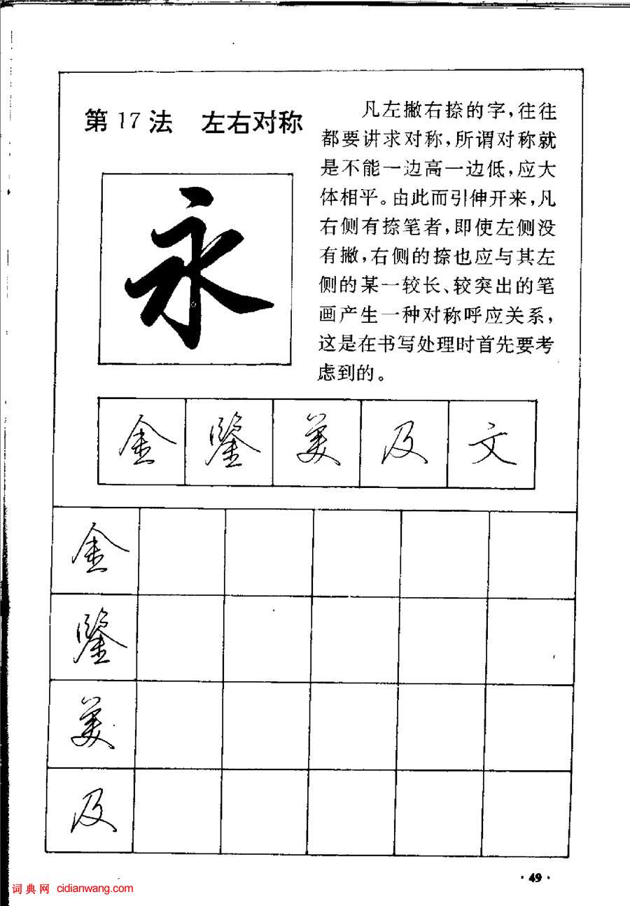 書法欣賞魏晉書法唐朝書法宋朝書法元朝書法明朝書法清朝書法近現代書法字典網>> 歷代書法>> 書法教程>> 田英章硬筆行書間架結構28法(9)正文 田英章硬筆行書間架結構28法(9)作者:田英章 書體:行書 首 頁 上一頁 5 6 7 8 9 10 11 12 13 14 下一頁 尾 頁田英章的相關書法作品:田英章異體字大全 田英章楷書《九成宮》描紅本字帖 田英章楷書《滕王閣序》 田英章楷書《百家姓》 田英章《大楷九成宮醴泉銘》 田英章硬筆行書間架結構28法 田英章硬筆書法基礎教程 動態圖 田英章楷書《顏氏家訓》 田英章硬筆楷書間架結構28法 相關文章:梁巘《行書七絕詩軸》 (行書)梁巘《行書七絕詩軸》紙本行書 117×56.5cm 北京故宮博物院藏。釋文:淡...錢大昕《隸書名酒異書七言聯》 (隸書)錢大昕《隸書名酒異書七言聯》 122×30cm×2 嘉定博物館藏釋文:名酒過...王守誠《跋唐人臨王獻之飛鳥帖》 (小楷)王守誠字君實,元朝文學家,詩人。太原陽曲(今屬山西)人。氣宇和粹,性好學。從鄧文...董小宛楷書《 杜甫詩三首扇面》 (楷書)董小宛《 杜甫詩三首扇面》紙本楷書 17×50cm 南京海2016年春拍 款識...王鴻緒《行書杜甫詩軸》 (行書)王鴻緒《行書杜甫詩軸》紙本行書 95×56cm 重慶市博物館藏。釋文:十日畫一...米芾行書《寄魏泰詩帖》 (行書)米芾《寄魏泰詩帖》(即《與魏泰唱和詩帖》疑為摹本 ) 紙本 行書 縱26厘米 橫...王鐸行草《臨閣帖》卷 (行草)王鐸 行草《臨閣帖》卷 是王鐸49歲是所臨的古帖,時在京師禮部右侍郎任上,同年九...米芾《法華台詩帖》 (行書)【釋文】法華台。塊圠有同色,雪深雲未開。終南晴夜月,仿佛似登台。米芾《法華台詩帖...張旭楷書《嚴仁墓誌》 (楷書)此碑於1992年元月發現於河南省洛陽市邙山腳下偃師縣磷肥廠擴建改造工地發掘的一處...李陽冰篆書《千字文》 (篆書)李陽冰,字少溫,趙郡(今河北省趙縣)人,生卒年不詳。好古,善屬文,他曾為縉雲令、...