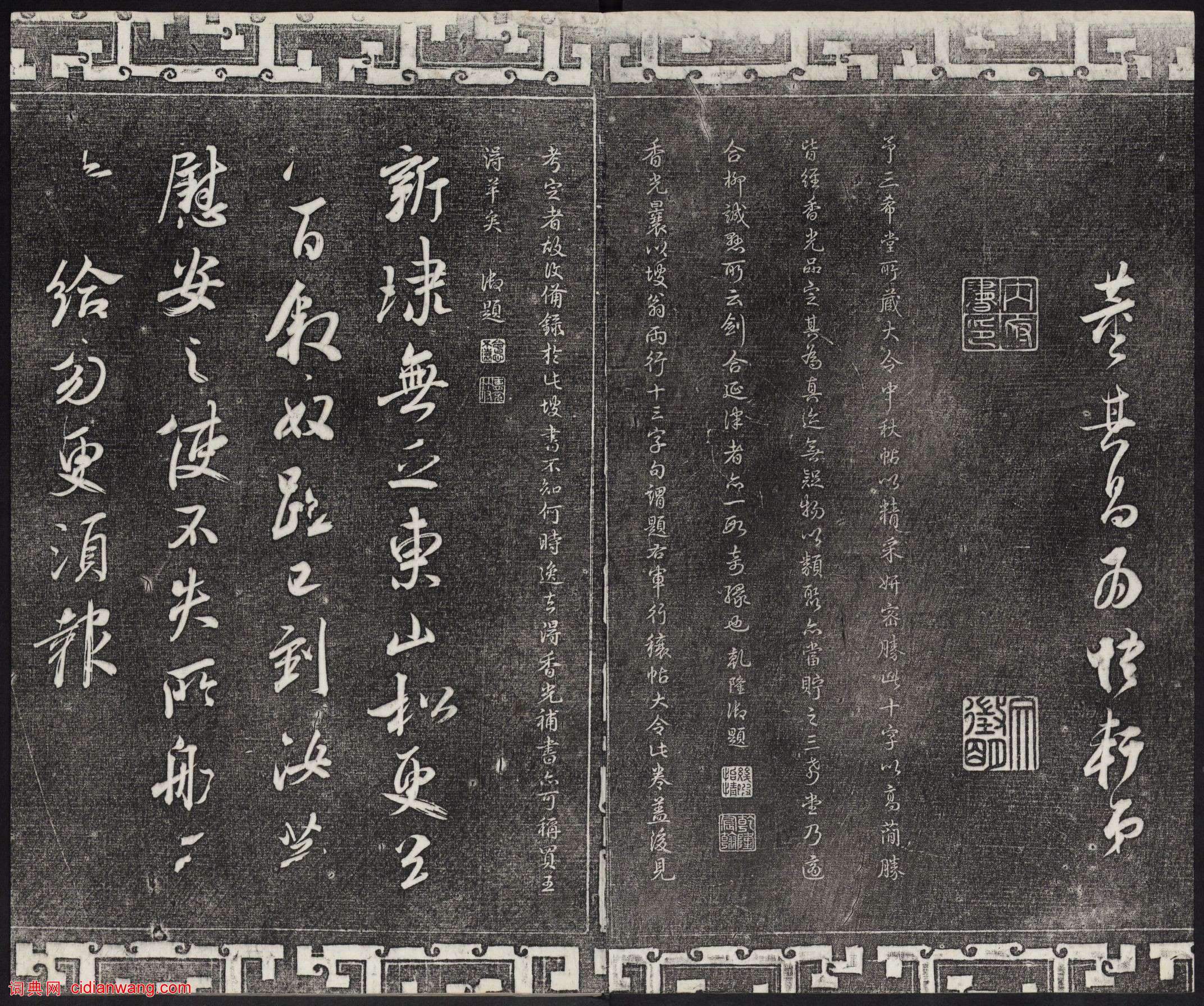 書法欣賞魏晉書法唐朝書法宋朝書法元朝書法明朝書法清朝書法近現代書法字典網>> 歷代書法>> 書法欣賞>> 御刻三希堂石渠寶笈法帖第二冊(9)正文 御刻三希堂石渠寶笈法帖第二冊(9) 首 頁 上一頁 5 6 7 8 9 10 11 12 13 14 下一頁 尾 頁 全文2017-11-13 10:11:09 相關文章:倪元璐《草書故人隔天風五言律詩軸》 (草書)倪元璐《草書故人隔天風五言律詩軸》綾本草書 169×40cm 山西博物院藏釋文...金農隸書《華山碑文》節選 (隸書)金農《華山碑文》節選,隸書軸 年代不詳 紙本 縱141厘米 橫53.5厘米 福建...西漢隸書《陽泉使者舍熏爐銘》 (隸書)陽泉使者舍熏爐銘,銘文13行凡47字,西漢。是器傳為西漢時期銅器,無詳細考據資料...陳淳行書《致顧貞叔札》 (行書)陳淳《致顧貞叔札》行書 25.5×20cm 上海博物館藏釋文:昨有客自城中來,...文徵明行草《西苑詩卷》 (行草)文徵明《西苑詩卷》局部(1554) 紙本 行草書 縱28.4厘米 橫447.4厘...伊秉綬隸書《退一步齋橫幅》 (隸書)隸書“退一步齋” 橫額 47×139cm 紙本 1813年 上海博物館藏...文信·野秀軒記 (楷書)文信《野秀軒記》,楷書,香港中文大學文物館藏。文信明洪武初人,號雪山,永嘉人。虞世南《潘六帖》 (草書)【釋文】潘六雲司未得近問。莫邪數小奴等,計不日當有狀來。虞世南《潘六帖》,拓本,...劉墉《行書句里舌端七言聯》 (行書)劉墉《行書句里舌端七言聯》蠟箋行書 93.5×21.2cm×2 安徽省博物...文徵明·小楷醉翁亭記 (小楷)文徵明小楷《醉翁亭記》,紙本,軸,縱53.5公分,橫28.6公分。台北故宮博物院...