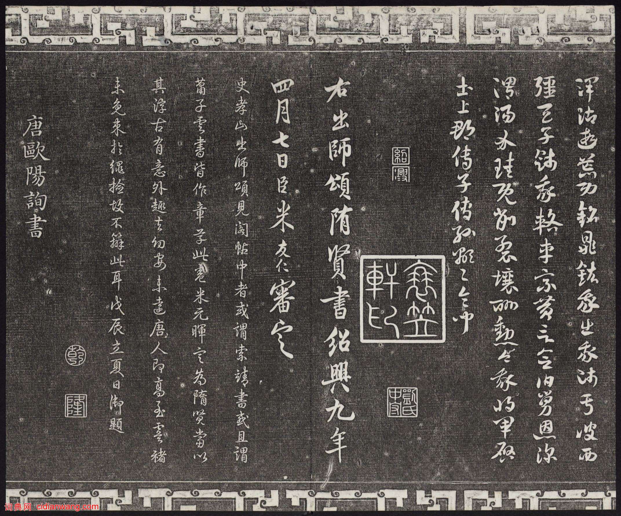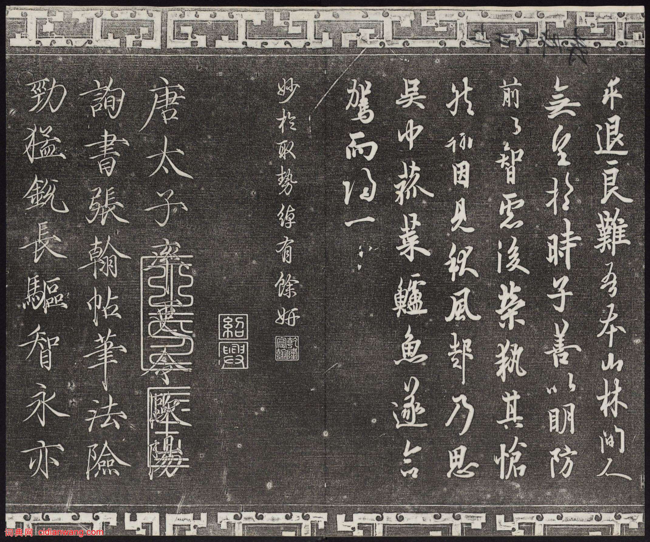 書法欣賞魏晉書法唐朝書法宋朝書法元朝書法明朝書法清朝書法近現代書法字典網>> 歷代書法>> 書法欣賞>> 御刻三希堂石渠寶笈法帖第三冊(3)正文 御刻三希堂石渠寶笈法帖第三冊(3) 首 頁 上一頁 1 2 3 4 5 6 7 8 9 10 下一頁 尾 頁 全文2017-11-14 10:47:21 相關文章:王羲之·集王聖教序 (行書)全稱《大唐三藏聖教序》。懷仁集王羲之行書而成。唐·鹹亨三年(672)十二月建。...陸恭·跋褚遂良《孟法師碑》 (楷書)陸恭跋褚遂良《孟法師碑》,楷書。北魏《元懷墓誌》 (楷書)元懷墓誌,北魏熙平二年(517)八月刻,1925年河南洛陽張羊村出土,原石現藏開...李應楨·大石聯句冊 (行書)《大石聯句冊》為明成化丙戌(1466)年間李應楨、吳寬、史鑑、張淵四人在蘇州城外...康里巎巎行書《漁父辭》 (行書)康里巎巎《漁父辭》 選自《三希堂法帖》釋文:漁父辭屈原既放,游於江潭,行吟澤畔,...徐鉉《千字文殘卷》 (篆書)徐鉉(傳)篆書《千字文殘卷》,紙本,縱27.7厘米,橫上90.5厘米,橫下81....蒲華《行書自作詩四首》 (行書)蒲華《行書自作詩四首》釋文:瑤台豈不得春多,花木叢香聚綺羅。拾級登臨高百尺,無涯...歷史上的狂草大師不可告人的秘密古詩四帖(局部) 作者張旭狂草,又稱“醉草”或“大草”,含有情感跳躍、奔放激越的...趙世駿《楷書五言詩四屏》軸 (楷書)趙世駿《楷書五言詩四屏》軸 85×19.5cm×4 庚申(1920年)作北京...周慧珺楷書字帖《長恨歌》 (楷書)周慧珺,女,1939年出生,浙江鎮海人。曾任中國書法家協會副主席、上海書法家協會...