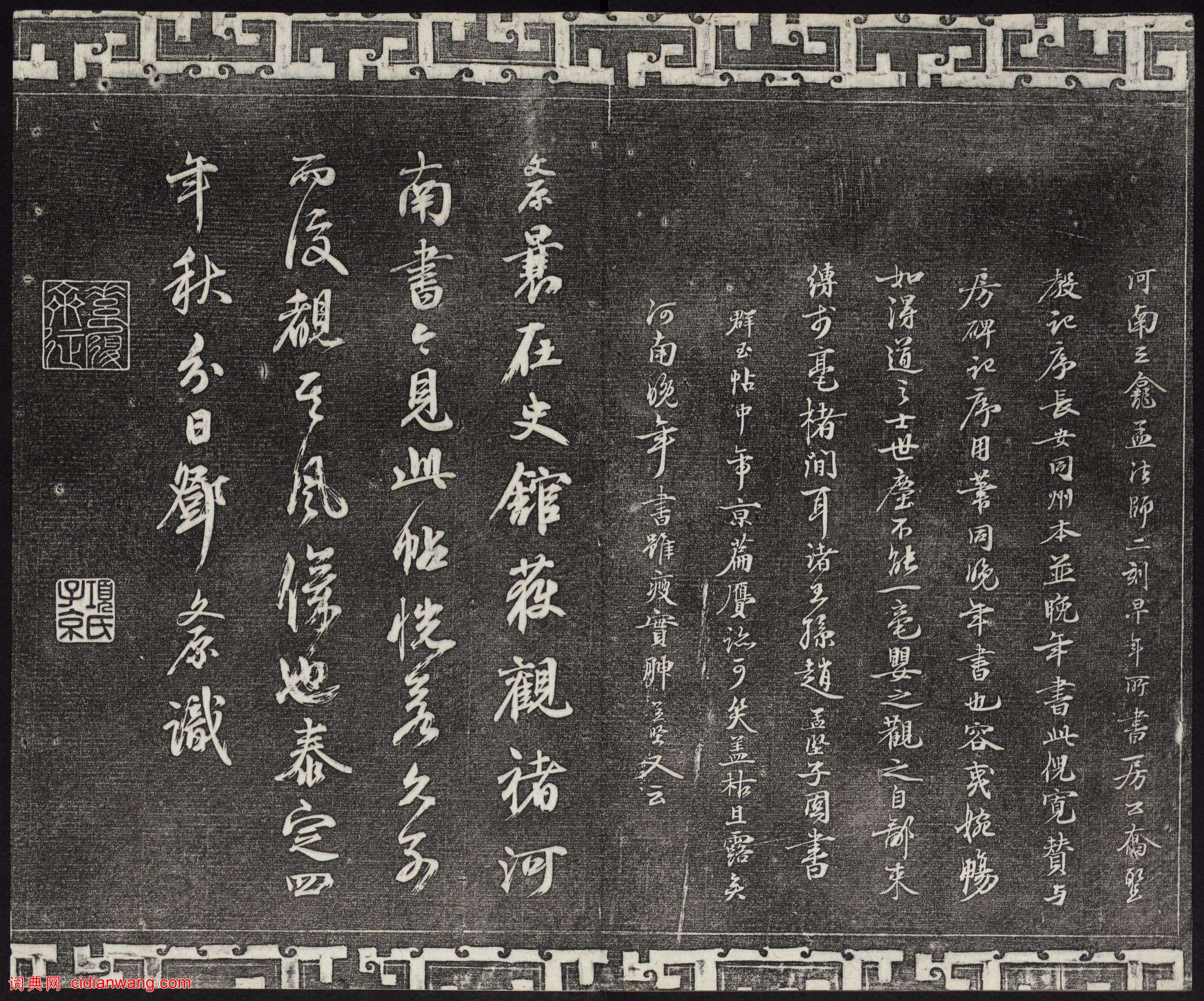 書法欣賞魏晉書法唐朝書法宋朝書法元朝書法明朝書法清朝書法近現代書法字典網>> 歷代書法>> 書法欣賞>> 御刻三希堂石渠寶笈法帖第三冊(6)正文 御刻三希堂石渠寶笈法帖第三冊(6) 首 頁 上一頁 2 3 4 5 6 7 8 9 10 11 下一頁 尾 頁 全文2017-11-14 10:47:21 相關文章:文徵明《行草口號十首卷》 (行草)明代文徵明書法作品欣賞《行草口號十首卷》紙本,高28.5厘米,縱310.6厘米,...李文田《行楷折芳援筆七言聯》 (行楷)李文田《行楷折芳援筆七言聯》 甲午(1894年) 廣東省立中山圖書館收藏【釋文...文徵明·小楷醉翁亭記 (小楷)文徵明小楷《醉翁亭記》,紙本,軸,縱53.5公分,橫28.6公分。台北故宮博物院...趙之謙《行楷薄帷高情五言聯》 (行楷)趙之謙《行楷薄帷高情五言聯》紙本行楷 155.2×41.8cm×2 浙江省博...吳熙載《篆書茗杯書卷五言聯》 (篆書)吳熙載《篆書茗杯書卷五言聯》 紙本, 蘭千山館藏釋文:茗杯眠起味,書卷靜中緣。轉...歐陽修《集古錄跋》 (楷書)【釋文】右漢西嶽華山廟碑。文字尚完可讀。其述自漢以來雲。高祖初興。改秦淫祀。太宗...沈尹默楷書《孫禹行墓志銘》 (楷書)沈尹默楷書欣賞《孫禹行墓志銘》1928作,滄縣張繼撰文,高陽崔其樞篆蓋,吳興沈尹...史可法·行書手札一 (行書)史可法《行書手札》。張瑞圖楷書《王蒼坪墓誌》 (楷書)張瑞圖《王蒼坪墓誌》志蓋(篆書) 鄲城縣博物館藏 張瑞圖《王蒼坪墓誌》志蓋(楷書...王羲之草書《獨坐帖》 (草書)王羲之草書《獨坐帖》,4行,35字。《獨坐帖》釋文:知彼乃爾。切切!汝乃獨坐,但...