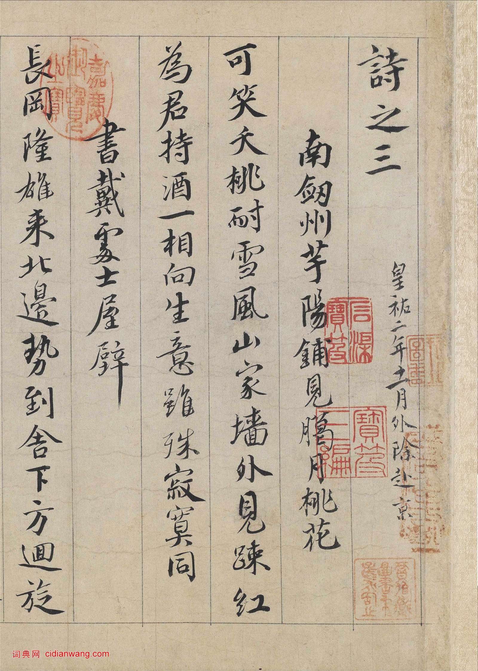 蔡襄《自書詩卷》,素箋本,縱28.2厘米、橫221.1厘米。藏北京故宮博物院。