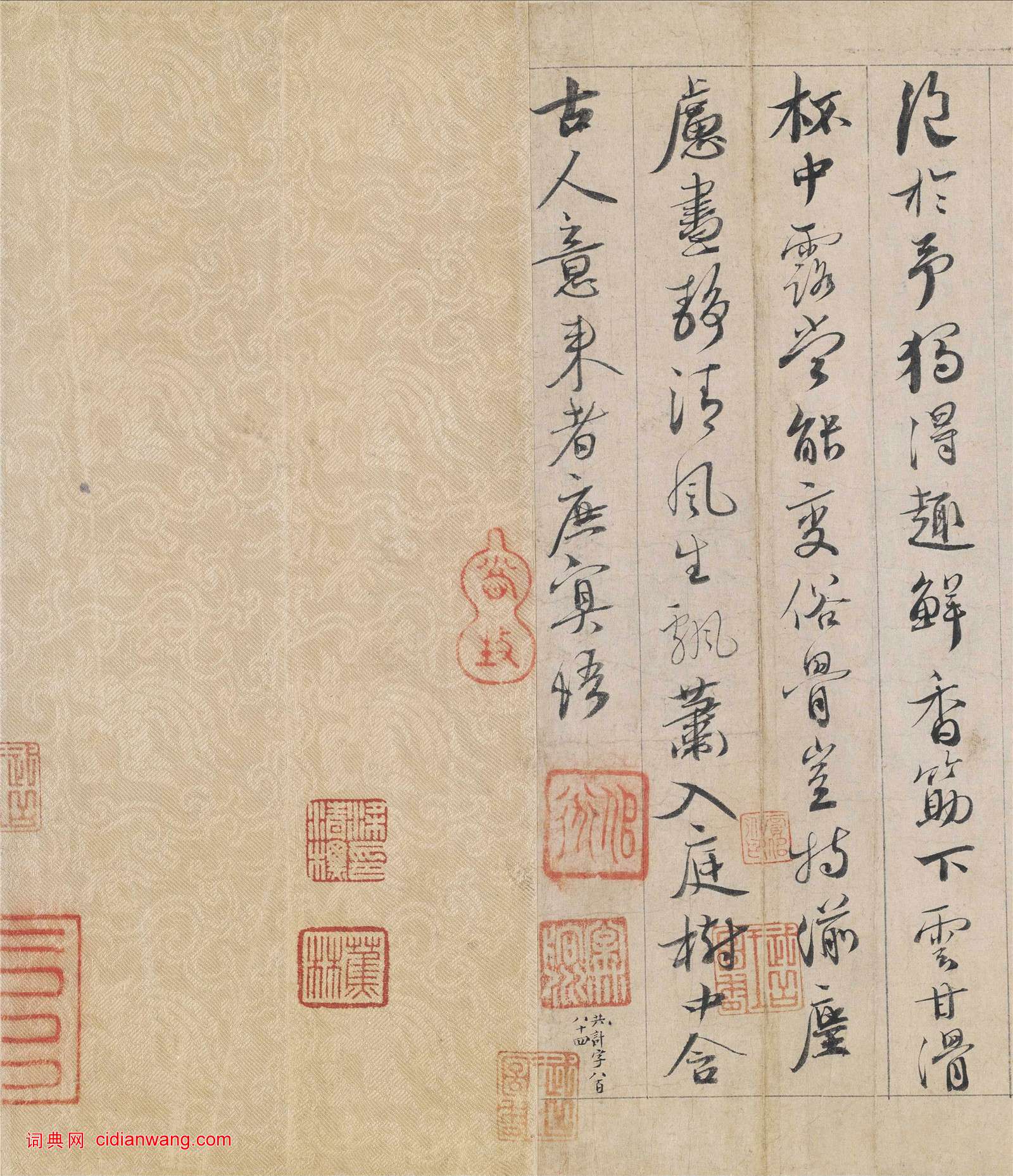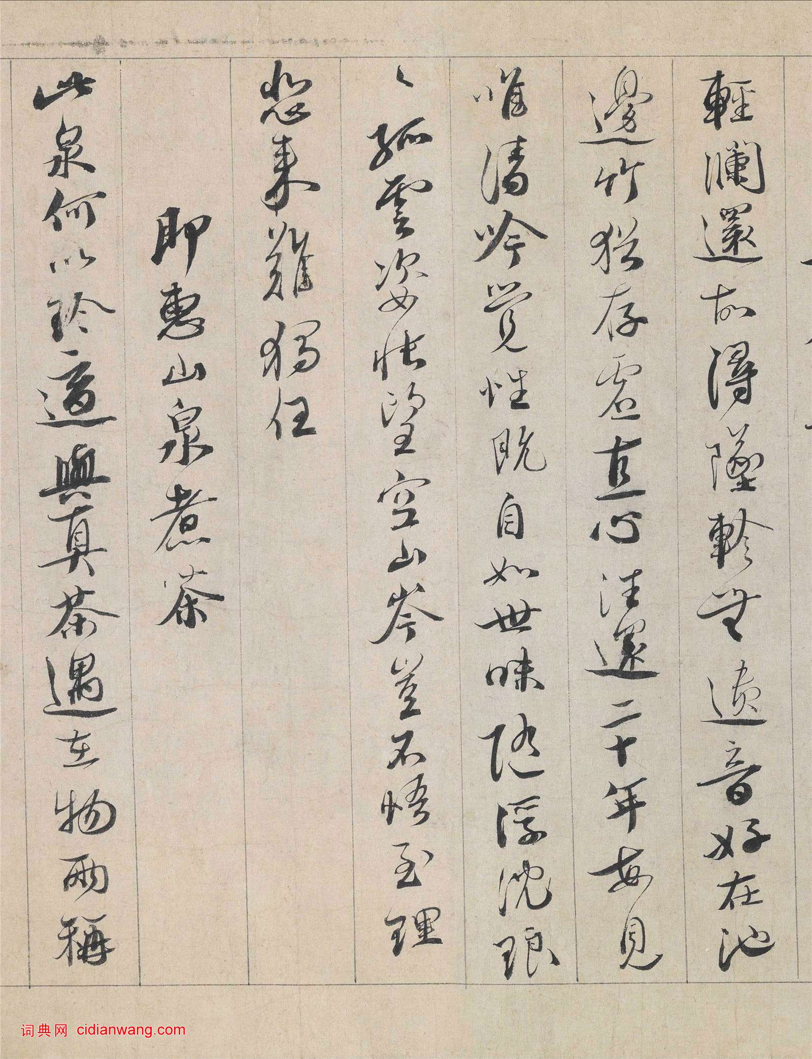 資源下載魏晉書法唐朝書法宋朝書法元朝書法明朝書法清朝書法近現代書法字典網>> 歷代書法>> 宋朝>> 蔡襄《自書詩卷》(5)正文 蔡襄《自書詩卷》(5)作者:蔡襄 書體:行書 名家題跋:首 頁 上一頁 1 2 3 4 5 6 7 8 下一頁 尾 頁 全文2014-4-7 9:18:26 蔡襄的相關書法作品:蔡襄《陶生帖》 蔡襄楷書《荔枝譜》 蔡襄《腳氣帖》 蔡襄《山堂詩帖》 蔡襄·《致公謹帖》又名《暑熱帖》 蔡襄大字楷書《杜牧詩句》殘卷 蔡襄草書《郊燔帖》 蔡襄《京居帖》 蔡襄的書法大全 相關文章:王安石行書《楞嚴經旨要》 (行書)王安石《行書楞嚴經旨要》卷 紙本 29.9×119cm 上海博物館藏...蔡襄《持書帖》 (行書)【釋文】襄啟:數日前遣使持書棨戟之下,輒邀行舸光臨弊境,計已通達當直,未審尊懷如...鄒之麟題黃公望《富春山居圖》 (行書)明 鄒之麟題黃公望《富春山居圖》 無用師卷,行書,紙本 ,台北故宮博物院藏釋文:...翁同龢行書《掃地模山八言聯》 (行書)翁同龢《行書掃地模山八言聯》紙本行書 260.4×57.9cm×2 蘇州博物...北魏《魏故世宗宣武皇帝嬪墓誌》 (楷書)北魏《魏故世宗宣武皇帝嬪墓誌》,孝昌二年八月六日立。 銘文: 魏故世宗宣武皇帝...趙麟行書《衡唐帖》 (行書)元 趙麟《衡唐帖》 頁,行書, 紙本墨筆 28.2x25.2cm北京故宮博物院藏...石濤《苦瓜和尚書畫冊》 (行書)此畫冊《苦瓜和尚書畫冊》為清代畫家石濤繪,共12幅,一圖一詩。舊藏日本大收藏家桑...鄭板橋行書《東坡小品》 (行書)鄭燮《坡公小品冊》,紙本,縱29厘米,橫18.2厘米。揚州博物館藏。顏真卿行書《蔡明遠帖》忠義堂帖本 (行書)顏真卿《蔡明遠帖鄒游帖》 拓本 選自《忠義堂帖》 浙江省博物館藏 ...梁升卿隸書《唐御史台精舍碑》 (隸書)梁升卿書法隸書欣賞《唐御史台精舍碑》,碑高145厘米,寬65厘米,碑文連題18行...