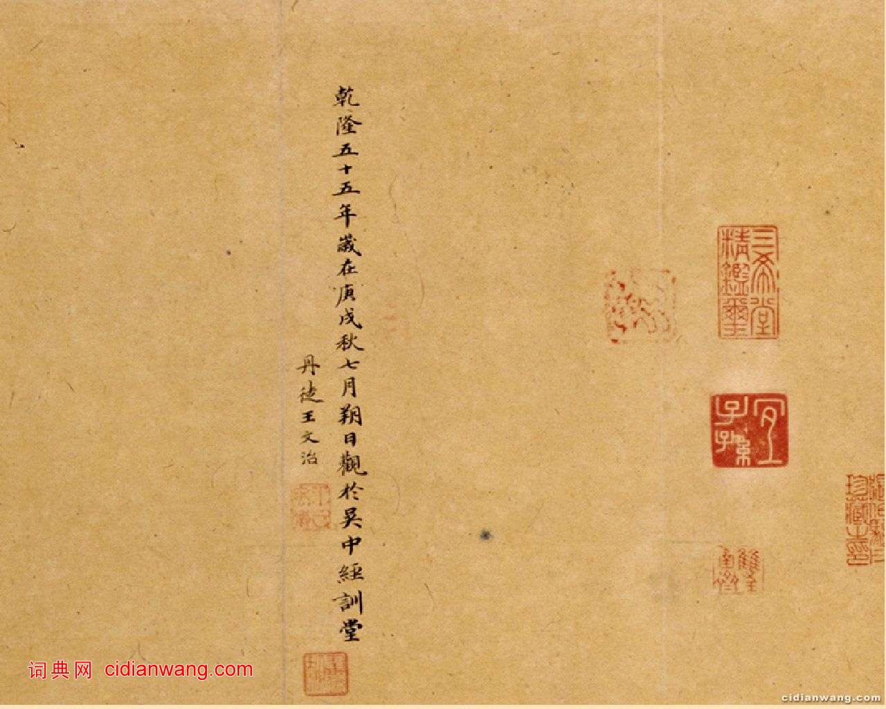 "乾隆五十五年歲在庚*七月朔日,觀於吳中經訓堂。丹徒王文治。"
