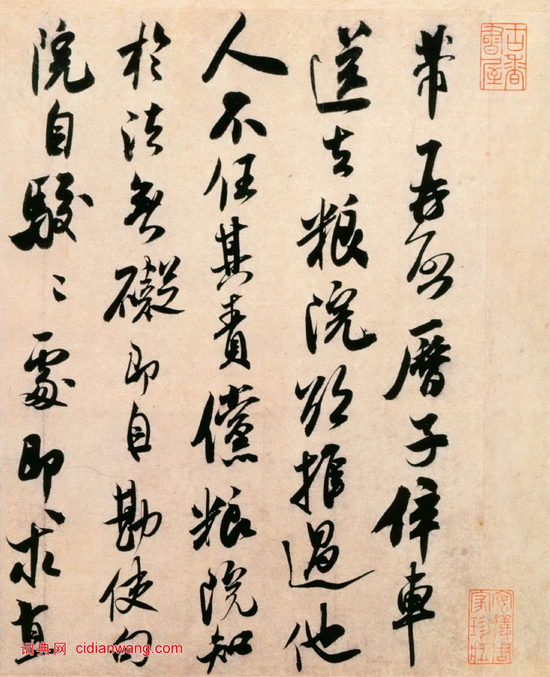 書法欣賞魏晉書法唐朝書法宋朝書法元朝書法明朝書法清朝書法近現代書法字典網>> 歷代書法>> 宋朝>> 米芾·糧院帖正文 米芾·糧院帖作者:米芾 書體:行書 【釋文】芾再啟。歷子倅車送去,糧院欲推過他人,不任其責。儻糧院知於法無礙,即自勘,使句院自駁,駁處即求直之端也。度此事必辨於上下乃已,幸左右明察,公文非得已也。或攜示倅,佳。芾皇恐。米芾《糧院帖》(又稱《歷子帖》),紙本,行書,縱25.6厘米,橫37.2厘米。北京故宮博物院藏。2015-9-19 20:01:49 米芾的相關書法作品:米芾行書《蕭閒堂記》附題跋 米芾行書《自敘帖》 米芾行書《砂步詩帖》 米芾·三吳詩帖 米芾行書《珊瑚帖、復官帖》 米芾草書《元日帖》 米芾行書《多景樓詩冊》 米芾·德忱帖 米芾·逃暑帖 相關文章:黃道周行草《明誠堂自書詩十章卷》 (行草)黃道周《明誠堂自書詩十章卷》行草 崇禎十七年(1644年)韓天衡氏藏《明黃道周行...張雨《九鎖山小楷詩卷》 (小楷)至正六年(1346) 張雨《九鎖山小楷詩卷》紙本 21.5×313.9cm 北...東漢隸書《張遷碑》 (隸書)《張遷碑》碑額:漢故谷城長、盪陰令張君表頌《張遷碑》全稱為《漢故谷城長盪陰令張君...董其昌·方暘谷小傳卷 (行書)董其昌《方暘谷小傳卷》,行書,金箋,與陳繼儒行書《方暘谷像贊》合冊,今藏蘇州博物...趙佶楷書瘦金體《牡丹詩帖》 (瘦金體)宋 趙佶《牡丹詩帖》紙本 楷書 瘦金體 34.8cm×53.3cm 台北故宮博...釋擔當《草書詩冊》 (草書)【釋文】窗外紅飄春去遲,山家養拙已多時。滿空飛絮隨風卷,一角殘山肯讓誰? 擔當。...沙孟海《隸書文章風月五言聯》 (隸書)沙孟海《隸書文章風月五言聯》 133.3×25.5cm×2 ...米芾·向亂帖 (行草)【釋文】向亂道在陳十七處,可取租及米,寒光旦夕以惡詩奉承。花卉想已盛矣。修中計已...林散之《隸書世界人間八言聯》 (隸書)林散之《隸書世界人間八言聯》紙本隸書 168×27cm×2 1962年 馬鞍...張雨行書《鶴巢詩卷》 (行書)至正三年(1343) 張雨《鶴巢詩卷》紙本蘇州博物館藏 資料來源:《中國書法全集...