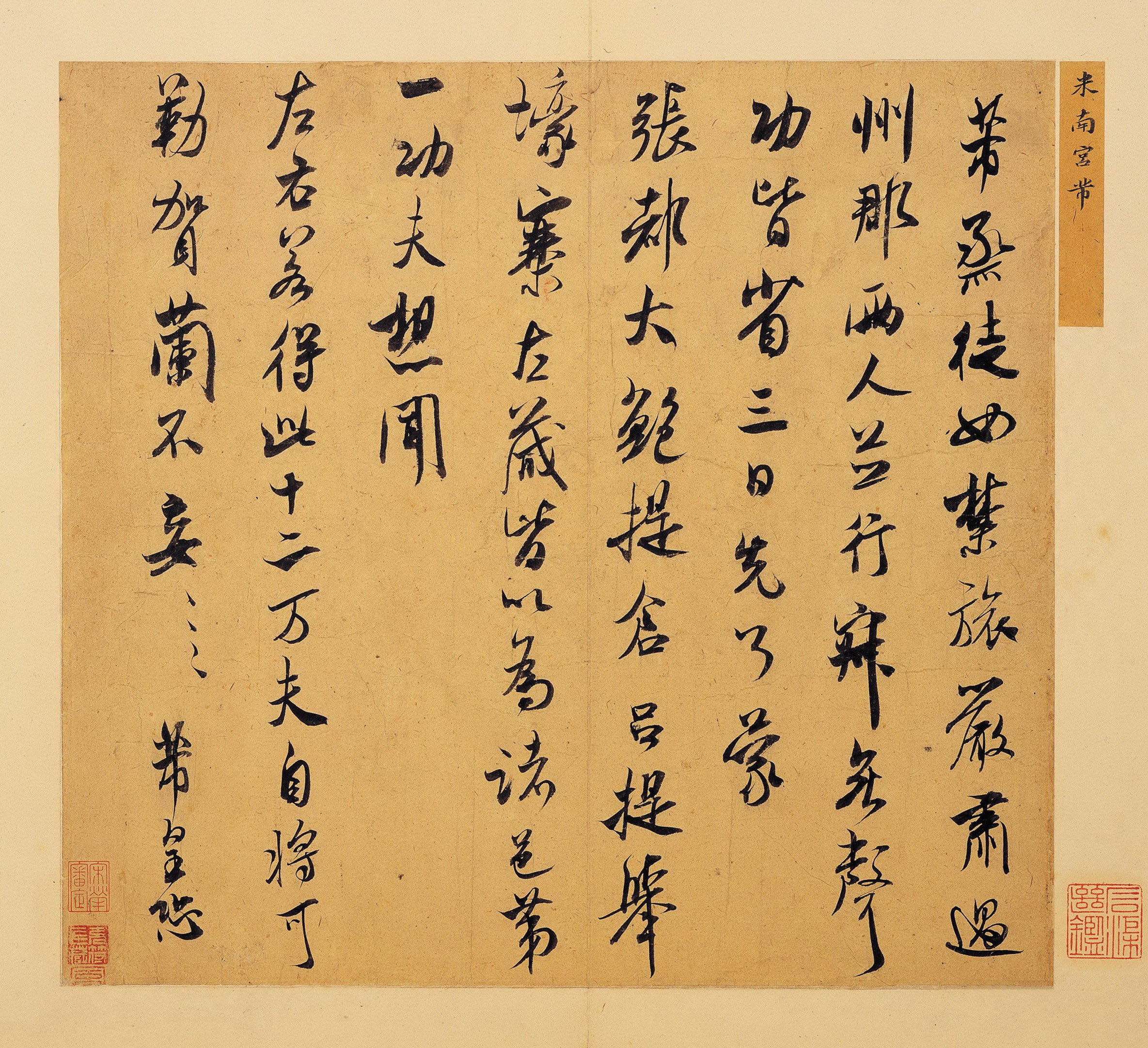 書法欣賞魏晉書法唐朝書法宋朝書法元朝書法明朝書法清朝書法近現代書法字典網>> 歷代書法>> 宋朝>> 米芾《烝徒帖》正文 米芾《烝徒帖》作者:米芾 書體:行書 【釋文】芾烝徒如禁旅嚴肅,過州郡,兩人並行。寂無聲,功皆省三日先了。蒙張都大、鮑提倉、呂提舉、壕寨左藏,皆以為諸邑第一功夫。想聞左右,若得此十二萬夫自將,可勒賀蘭。不妄、不妄。芾皇恐。 米芾《烝徒帖》,紙本,行書,縱29.9厘米,橫31.6厘米。台北故宮博物院藏。米芾的相關書法作品:米芾《法華台詩帖》 米芾《留簡帖》 米芾行書《千字文》集字 米芾·蘇太簡參政帖 米芾《陳攬帖》 米芾行書《政事帖》 米芾行草《樂兄帖》 米芾草書《臈白帖》 米芾行書《天馬賦》並序拓本 相關文章:王羲之草書《其書帖》 (草書)王羲之《其書帖》臨本,紙本。3行,24字。草書。此帖為近代羅振玉收錄於《貞松堂藏...懷素《苦筍帖》 (草書)【釋文】苦筍及茗異常佳,乃可逕來。懷素上。懷素《苦筍帖》卷,草書,絹本,無年款。...王羲之草書《行穰帖》 (草書)王羲之《行穰帖》,原跡已失傳。此為初唐時期的雙鉤填墨摹本,硬黃紙本,傳為米芾再臨...北魏《北海王元詳造像記》 (楷書)龍門二十品之《北海王元詳造像記》,全稱“北海王元詳為母子平安造彌勒像記”。造像記...行書結字不簡單?掌握規律並不難行書是介於楷書與草書之間的一種書體。行書脫胎於隸書,萌生於東漢而成形於魏晉,至東...胡適書法作品欣賞 (行楷)胡適,著名學者、詩人,原名嗣穈,學名洪騂,字希疆,後改名胡適,字適之。 安徽徽...沈曾植《臨法帖書屏》 (行書)沈曾植《臨法帖書屏》紙本 106.5×50.5cm×4 浙江省博物館藏 之一...王覿《平江酒毛帖》 (行書)【釋文】覿再拜 平江酒毛汝能 乃覿所辟置 天下之奇材 而湯德廣諸人 不以法度御之...鄭濤·跋耶律楚材《送劉滿詩卷》 (行書)元代 鄭濤跋耶律楚材《送劉滿詩卷》,行書,至正十二年(1351年),美國紐約大都...喜歡閒章嗎,閒章內容大全導讀:閒章,是印章中的一種,是區別于姓名字號章的一類。廣義地講,它濫觴於戰國及秦...