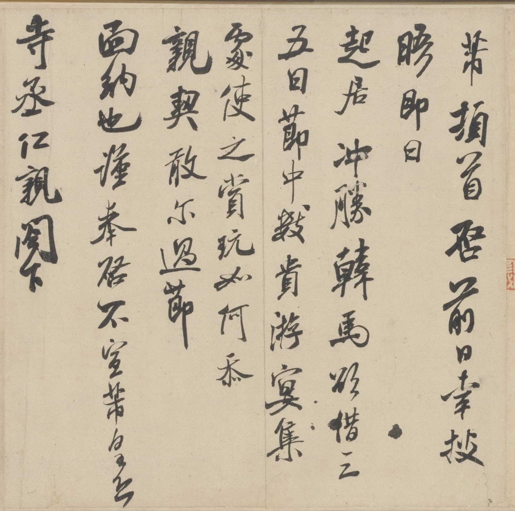 資源下載魏晉書法唐朝書法宋朝書法元朝書法明朝書法清朝書法近現代書法字典網>> 歷代書法>> 宋朝>> 米芾·行書三札卷(2)正文 米芾·行書三札卷(2)作者:米芾 書體:行書 首 頁 上一頁 1 2 3 4 下一頁 尾 頁米芾的相關書法作品:米芾《留簡帖》 米芾小楷《千字文》 米芾·知府帖 米芾《陳攬帖》 米芾·德忱帖 米芾《鄉石帖》 米芾《公議帖》 米芾《韓馬帖》 米芾行草10帖 相關文章:顏真卿雅集《竹山堂連句》 (楷書)顏真卿楷書《竹山堂連句》是魯公傳世不多的墨跡之一。雖然這幅作品沒有其他傳世作品的...趙之謙《隸書負舟絜宇五言聯》 (隸書)趙之謙《隸書負舟絜宇五言聯》紙本隸書 98.5×25.5cm 浙江省博物館藏 ...張裕釗《行書書到文如七言聯》 (行書)張裕釗《行書書到文如七言聯》紙本行書 163×42cm×2 上海博物館藏釋文...宋克·張懷瓘論用筆十法 (行草)宋克書《唐張懷瓘論用筆十法》,紙本。此作今已一分為二,前半部分縱46.7厘米,橫...張雨行書《次韻天鏡上人送柑詩帖》 (行書)張雨《次韻天鏡上人送柑詩帖》紙本 26.5×29.4cm 無紀年 北京故宮博物...楊嘉祚·跋虞世南《摹蘭亭序》 (草書)楊嘉祚跋虞世南《摹蘭亭序》,縱24.5厘米。現藏於北京故宮博物院。趙孟頫小楷《黃庭經》 (小楷)趙孟頫小楷臨《黃庭經》彩色墨跡本,26.5*485.4厘米,北京故宮博物院藏本。...范成大草書《雪後帖》 (草書)范成大《雪後帖》紙本 31.9×51.3cm 台北故宮博物院藏 范成大《雪後帖...趙孟頫行草《致中峰和尚札》冊 (行草)趙孟頫 《致中峰和尚札》紙本,縱30.5cm,橫62.7cm。北京故宮博物院藏此...文徵明·跋張即之《汪氏報本庵記》 (楷書)文徵明跋張即之《汪氏報本庵記》,楷書。遼寧省博物館藏。張即之《汪氏報本庵記》,紙...