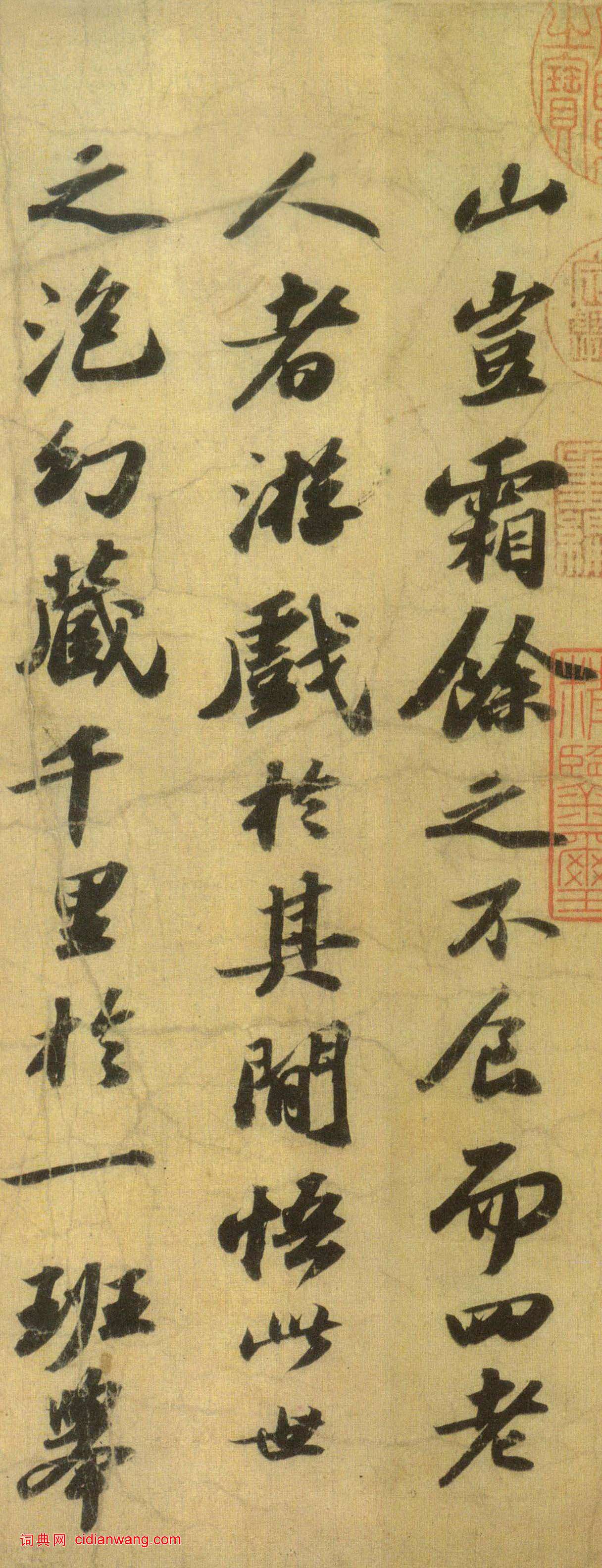書法欣賞魏晉書法唐朝書法宋朝書法元朝書法明朝書法清朝書法近現代書法字典網>> 歷代書法>> 宋朝>> 蘇軾·洞庭春色賦中山松醪賦合卷(2)正文 蘇軾·洞庭春色賦中山松醪賦合卷(2)作者:蘇軾 書體:行書 首 頁 上一頁 1 2 3 4 5 6 7 8 9 10 下一頁 尾 頁 全文2016-1-15 12:43:40 蘇軾的相關書法作品:蘇軾《治平帖》 蘇軾行書《尊丈帖》 蘇軾行書《李太白仙詩卷》 蘇軾行書《春中帖》 蘇軾《歸安丘園帖》 蘇軾行書《李白仙詩卷》 蘇軾行書《職事帖》 蘇軾行書《禱雨帖》 蘇軾《行書杜甫堂成詩卷》三希堂法帖拓本 相關文章:蘇軾行書《榿木卷帖》 (行書)蘇軾行書欣賞:《榿木卷帖》 又稱《書杜工部榿木詩卷帖》。蘇軾書杜甫詩,墨跡本,澄...譚延闓行書《風流罨畫七言聯》 (行書)譚延闓《行書風流罨畫七言聯》紙本行書 147x49cm×2 浙江省餘杭博物院藏...祁寯藻行楷《春能夢亦七言聯》 (行楷)祁寯藻《行楷春能夢亦七言聯》紙本行楷書 135×30cm×2 淮安市博物館藏...文徵明·行書自作詩卷 (行書)釋文立春進賀。王殿千官拜冕旒,紫衣京兆在前頭。四時盛德初臨木,先日嚴寒已送牛。氣...吳熙載《篆書山澤金石七言聯》 (篆書)吳熙載《篆書山澤金石七言聯》紙本篆書 129.3×31.5cm×2 浙江省博...沈曾植《行書杜甫秋盡詩扇面》 (行書)沈曾植《行書杜甫秋盡詩扇面》紙本行書 18×52cm 平湖市博物館藏 釋文:秋...唐寅行書《落花詩冊》蘇州市博物館藏本 (行書)唐寅《落花詩冊》蘇州市博物館藏本 行書 紙本冊頁,三十四開,每開尺寸27cm x...黃道周行草《山中雜詠》 (行草)黃道周《山中雜詠》台北故宮博物院藏,上海書畫出版社出版,2001年6月1日出版。...金琮行草《為以言書四先生詩》卷 (行草)金琮《為以言書四先生詩》卷 紙本 弘治六年(1493) 北京故宮博物院藏弘治六年...董其昌行書《五言詩扇面》 (行書)董其昌行書五言詩扇面 縱16.4厘米、橫52.6厘米 藏廣東省博物館