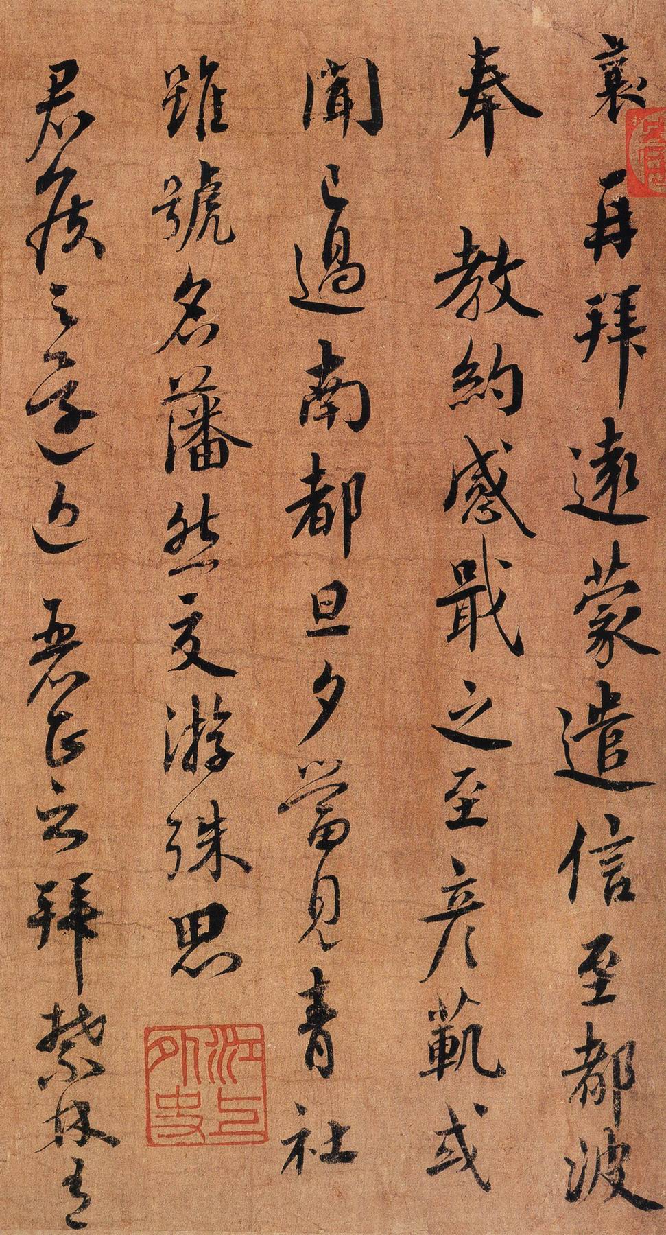 書法欣賞魏晉書法唐朝書法宋朝書法元朝書法明朝書法清朝書法近現代書法字典網>> 歷代書法>> 宋朝>> 蔡襄·彥猷侍讀帖正文 蔡襄·彥猷侍讀帖作者:蔡襄 書體:行書 【釋文】襄再拜。遠蒙遣信至都波,奉教約,感戢之至。彥范或聞已過南都,旦夕當見。青社雖號名藩,然交遊殊思君侯之還。近麗正之拜,禁林有嫌馮當世獨以金華召,亦不須玉堂唯此之望。霜風薄寒,伏惟愛重,不宣。襄上,彥猷侍讀閣下。謹空。 蔡襄《彥猷侍讀帖》,又稱《遠蒙帖》,1061年,紙本,縱28.6厘米,橫28.6厘米。台北故宮博物院藏。蔡襄的相關書法作品:蔡襄楷書《海隅帖》 蔡襄《蒙惠帖》 蔡襄《扈從帖》 蔡襄的書法大全 蔡襄《自書詩卷》 蔡襄行楷《虹縣帖》 蔡襄·澄心堂帖 蔡襄楷書《謝賜御書詩表》 蔡襄行楷《虛堂詩帖》 相關文章:楊維楨《夢遊海棠詩卷》 (行草)元代著名文學家,書法家楊維楨晚年的作品《夢遊海棠詩卷》,大家品味一下晚年鐵崖的豪...趙孟頫行書《文賦》 (行書)《文賦》為墨跡本,是初唐時期少有的幾部名家真跡之一。據《石渠寶笈》載,縱26.6...陸師道·題仇英《仙山樓閣圖》 (楷書)【釋文】仙山賦。馳藻思兮何間關。搆圖繪兮非人間。將神遊之恍惚兮。抑倒景之曾攀。山...陳洪綬行書《致祝淵詩翰》 (行書)陳洪綬《致祝淵詩翰》紙本 26.9×9.9cm不等 約1643 浙江省博物館藏...文徵明·行書自作詩卷 (行書)釋文立春進賀。王殿千官拜冕旒,紫衣京兆在前頭。四時盛德初臨木,先日嚴寒已送牛。氣...鄧石如篆書《朱熹四齋銘》 (篆書)鄧石如篆書《朱熹四齋銘》在上海崇源2002秋季拍賣會拍賣至52.8萬元...鄧石如《四體書冊》之《擇故山濱水地行草書冊》 (行草)鄧石如《四體書冊》之《擇故山濱水地行草書冊》 嘉慶二年(1797) 日本東京國立...趙之謙《隸書負舟絜宇五言聯》 (隸書)趙之謙《隸書負舟絜宇五言聯》紙本隸書 98.5×25.5cm 浙江省博物館藏 ...梁啓超《贈允之楷書軸》 (楷書)梁啓超《贈允之楷書軸》楷書 124×31cm 嘉定博物館藏釋文:公之雲令德音孔...劉致《跋鮮于樞草書韓愈進學解》 (行楷)【釋文】鮮于困學之書始學奧敦周卿竹軒後學姚魯 公雪齋為湖南憲司經歷見李北海嶽麓寺...