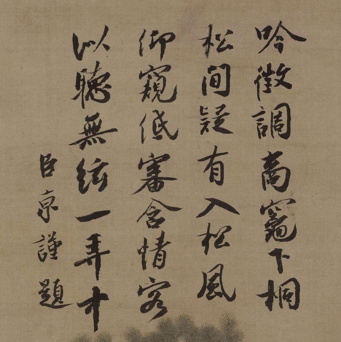書法欣賞魏晉書法唐朝書法宋朝書法元朝書法明朝書法清朝書法近現代書法字典網>> 歷代書法>> 宋朝>> 蔡京·聽琴圖題詩正文 蔡京·聽琴圖題詩作者:蔡京 書體:行書 蔡京《聽琴圖題詩》,北京故宮博物院藏。《聽琴圖》是宋徽宗趙佶人物畫的代表作。左上有瘦金書“聽琴圖”三字,左下另書“天下一人”押。蔡京深得徽宗寵信,所以在他的繪畫作品上多有蔡京的題記,題詩。畫面上方,蔡京題七言絕句一首,形容畫中情景,頌揚琴聲的清越宛妙,書法欹側姿媚,工力深厚,字勢豪健,痛快沉著。高清大圖看下一頁:1 2 下一頁 尾 頁蔡京的相關書法作品:蔡京行書《節夫帖》 蔡京行書《宮使帖》 蔡京·聽琴圖題詩 蔡京行書《跋趙佶雪江歸棹圖卷》 蔡京·唐玄宗鶺鴒頌題跋 蔡京·雪江歸棹圖卷跋 蔡京行書《跋宋徽宗唐十八學士圖卷》 蔡京·王希孟千里江山圖跋 蔡京《宮使帖》 相關文章:鄧石如《四體書冊》之《雪齋清境楷書冊》 (楷書)鄧石如《四體書冊》之《雪齋清境楷書冊》 嘉慶二年(1797) 日本東京國立博物館...田蘊章楷書字帖300字 (楷書)《田蘊章楷書300字》里大多數的字在之前的每日一題每日一字里都有講到,而且都帶有...鄧石如篆刻作品欣賞 (篆書)作為清代碑學書家巨擘,他的出現標誌著碑學派用毛筆在宣紙上書寫魏晉南北朝碑以至漢碑...敦煌經書《大樓炭經卷第七》 (小楷)《大樓炭經卷第七》北魏延昌二年(513),敦煌鎮經生張顯昌所抄寫捲軸《大樓炭經卷...王鐸草書《臨帖扇面》 (草書)王鐸 草書臨帖扇面 金箋 南京博物院藏徐枋行書《五言詩軸》 (行書)徐枋《五言詩軸》紙本行書 206.1×48.3cm 上海博物館藏 釋文:日觀東...李邕行書《晴熱帖》墨拓 (行書)李邕《晴熱帖》墨拓 見於宋拓《淳化閣帖》約書於開元二十二年(七三四)。手 札。刻...文徵明行書滕王閣序 (行書)文徵明是明代著名的文學家、書畫家,在書法上有頗高的造詣,他的成就以小楷最為突出,...周必大·跋李結《西塞漁舍圖》 (行書)周必大跋李結《西塞漁舍圖》,縱40.7厘米。大都會美術館藏。鮮于樞草書《韓愈進學解》 (草書)草書韓愈進學解 縱49.1厘米 橫795.5厘米 北京首都博物館藏 《進學解》原...