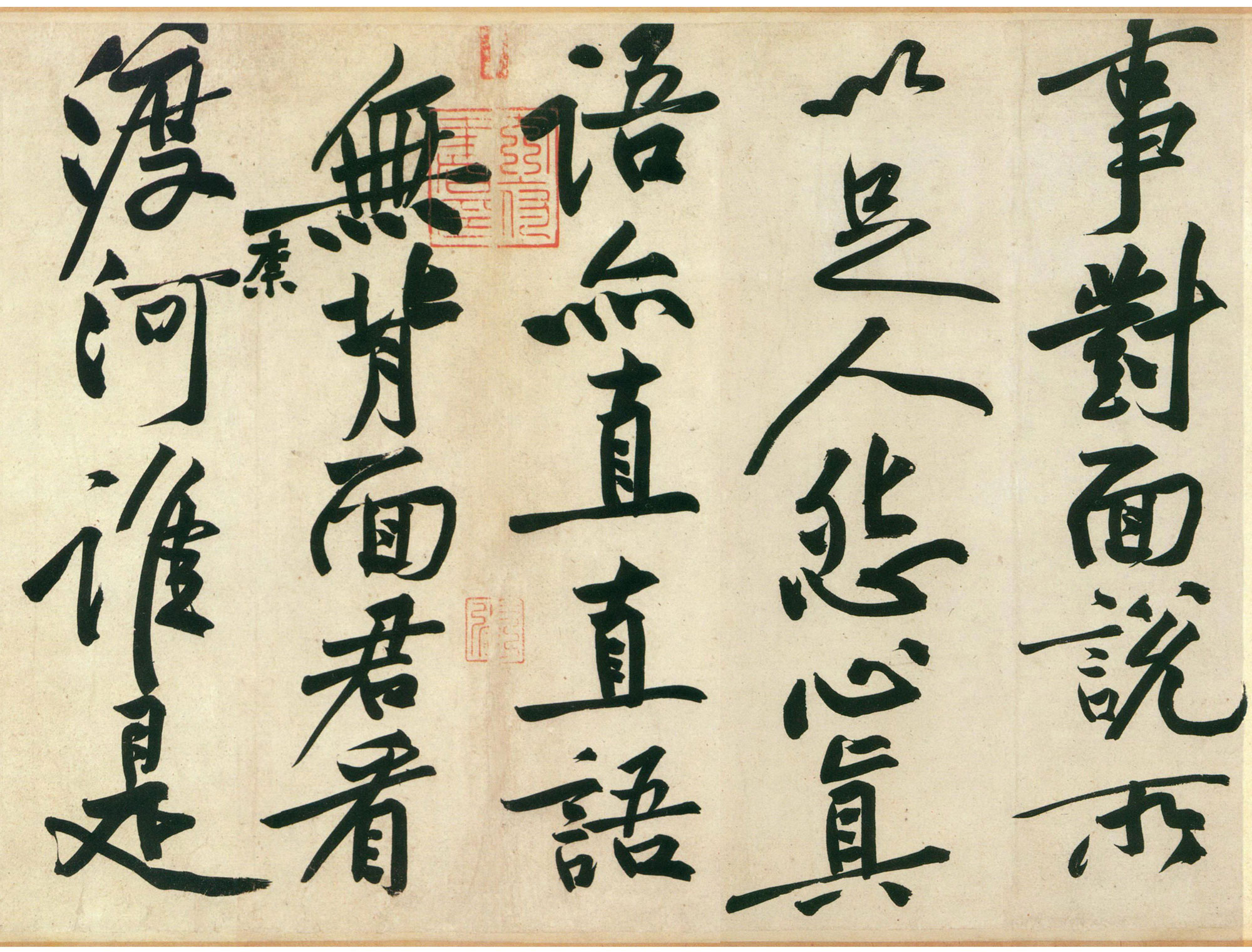 (商丘宋犖)書畫府印、(寶軸時開)心一灑、商丘宋犖審定真跡。宋犖 宋犖(1634-1713),商邱人,宋榷子,字牧仲,號漫堂,又號西陂。康熙間以蔭子入官,累官至吏部尚書,加太子少師。精鑑藏,善畫,著有《西陂類稿》、《綿津山人詩集》等書。