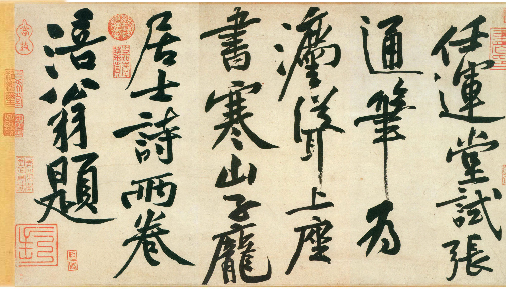 石渠寶笈、淳化軒、乾隆宸翰、信天主人、乾隆御覽之寶等數枚。清高宗 弘曆(1711-1799),清世宗四子,文治武功,為清諸帝之最。清高宗亦熱愛鑑賞書畫,曾將宮中收藏編為《秘殿珠林》《石渠寶笈》初編、續編數巨冊。在位六十年,廟號高宗,年號乾隆。