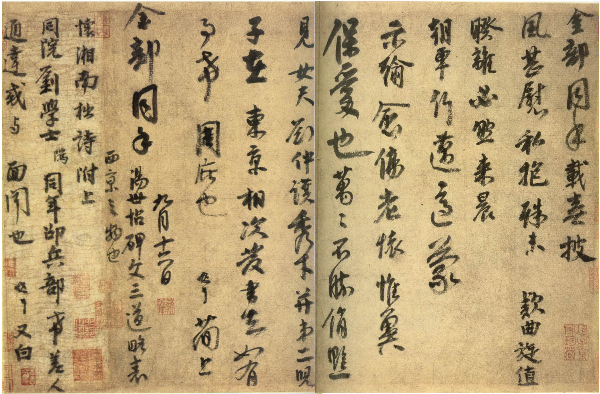 【釋文】金部同年,載喜披風,甚慰私抱,殊為款曲。鏇值睽離,必然來晨朝車行邁,適蒙示翰,愈傷老懷,惟冀保愛也。萬萬,不勝消黯。見(現)女夫劉仲謨秀才並第二兒子在東京,相次發書去。如有事,希圖庇也。建中簡上,金部同年,九月十六日。《湯世帖》碑文三道,略表西京之物也。《懷湘南》拙詩,附上同院劉學士騭。同年邵兵部,希差人通達,或與面聞也。建中又白。