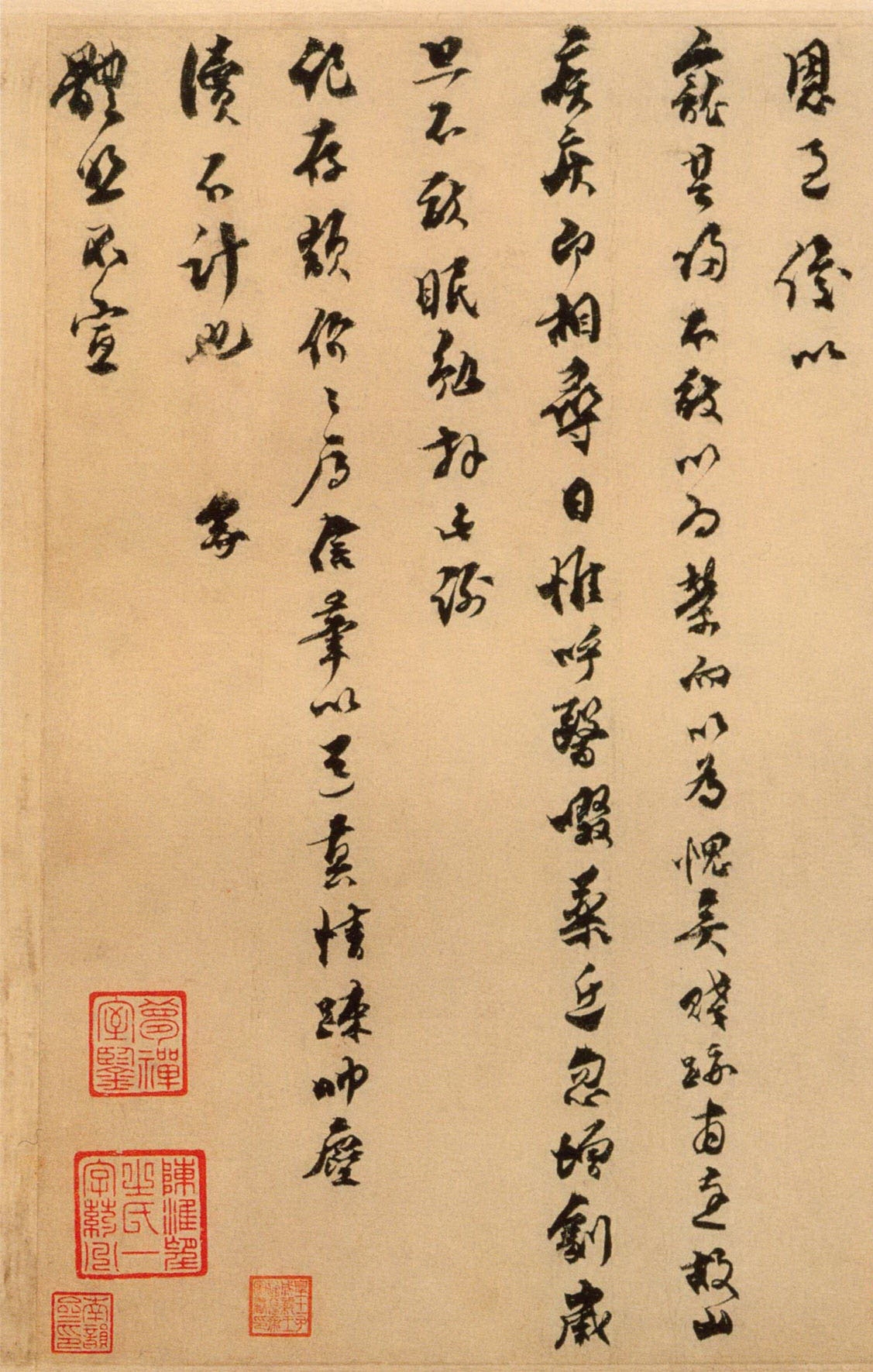 《閏余帖》又稱《鄧使郎中帖》,行書,23行,240字。本幅鑑藏印鈐“蓮樵鑑賞”、“皇十一子成親王詒晉齋圖書印”、“蓮樵成勛鑑賞書畫之章”、“南韻齋印”、“夢禪室鑒”、“陳淮望之氏一字藥州”。