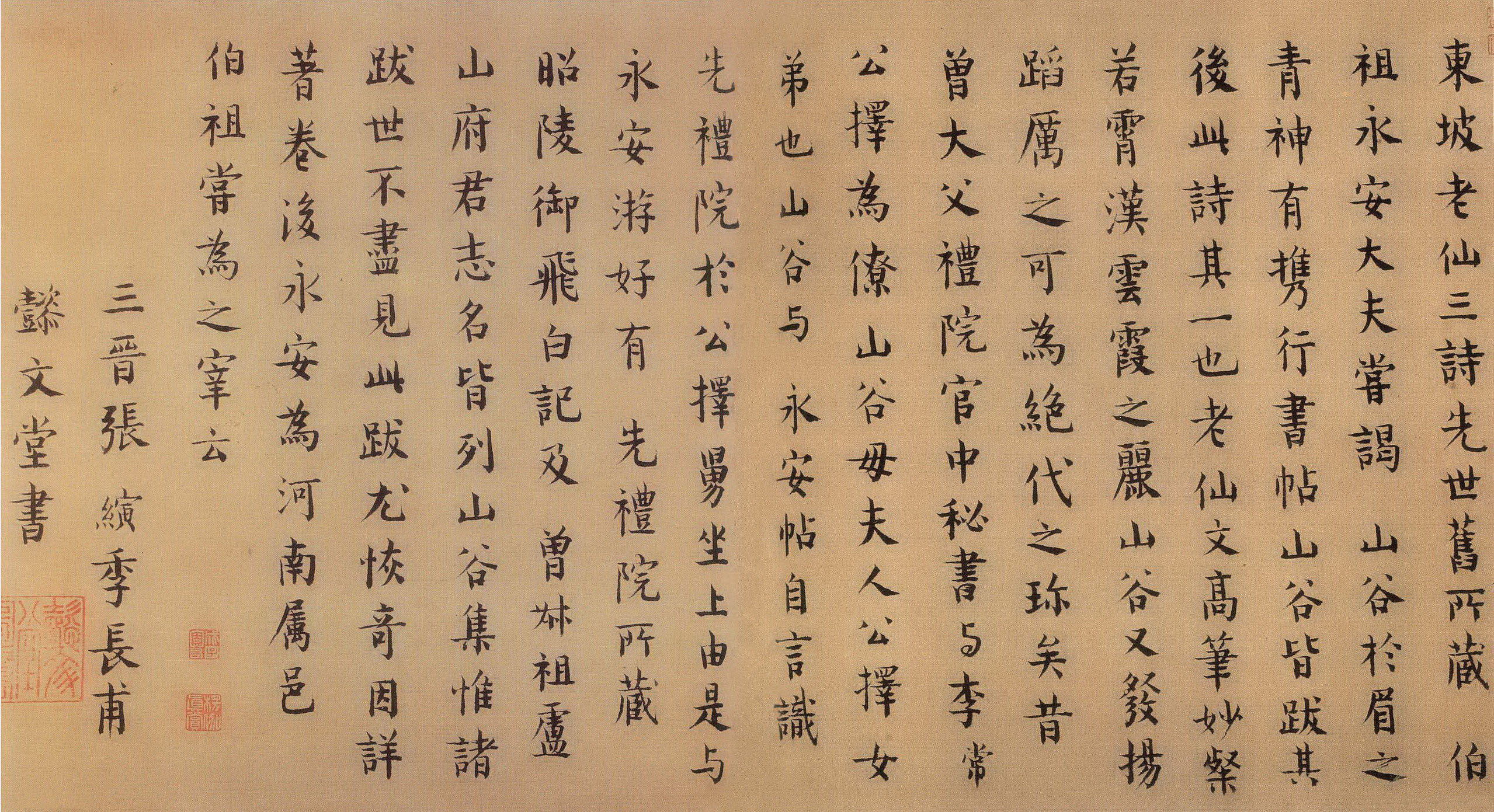 書法欣賞魏晉書法唐朝書法宋朝書法元朝書法明朝書法清朝書法近現代書法字典網>> 歷代書法>> 宋朝>> 張縯·跋蘇軾《黃州寒食詩帖》正文 張縯·跋蘇軾《黃州寒食詩帖》作者:張縯 書體:楷書 張縯跋蘇軾《黃州寒食詩帖》,楷書。現藏台灣故宮博物院。相關文章:林散之跋黃賓虹《黃山臥遊》 (行書)▶釋文:黃山臥遊|前後雲海,一松一石無不入畫,撫琴動操,欲令眾山皆響。 虹叟林散...左宗棠行書《滄海青天七言聯》 (行書)左宗棠《行書“滄海青天”七言聯》 湖南省博物館藏釋文:滄海六鰲瞻氣象,青天一鶚見...張瑞圖行草《書李白夢遊天姥吟留別詩冊》 (行草)張瑞圖《書李白夢遊天姥吟留別詩冊》 紙本行草書 25.7×30.5cm×14...高士奇·跋《絳帖》 (楷書)高士奇跋《絳帖》,楷書。蘇軾·洞庭春色賦中山松醪賦合卷 (行書)《洞庭春色賦》與《中山松醪賦》,均為蘇軾撰並書。此兩賦並後記,為白麻紙七紙接裝,...王羲之小楷《道德經》 (小楷)此本為東晉書法家王羲之小楷道德經,有褚遂良跋的一個拓本。關於這篇書法有一個有趣的...柳公權楷書《陸士衡演連珠》 (楷書)柳公權楷書《陸士衡演連珠》拓片,相傳《陸士衡演連珠》只比玄秘塔早寫了六個月。此時...康里巎巎行草《致彥中尺牘》 (行草)康里巎巎《致彥中尺牘》紙本 30.8×55.6cm 台北故宮博物院藏釋文:康里...蔣山卿·跋虞世南《摹蘭亭序》 (行草)蔣山卿跋虞世南《摹蘭亭序》,縱24.5厘米。現藏於北京故宮博物院。沈尹默:顏真卿《述張旭筆法十二意》釋譯張旭,字伯高。顏真卿,字清臣。《唐書》皆有傳。世人有用他兩人的官爵稱之為張長史、...