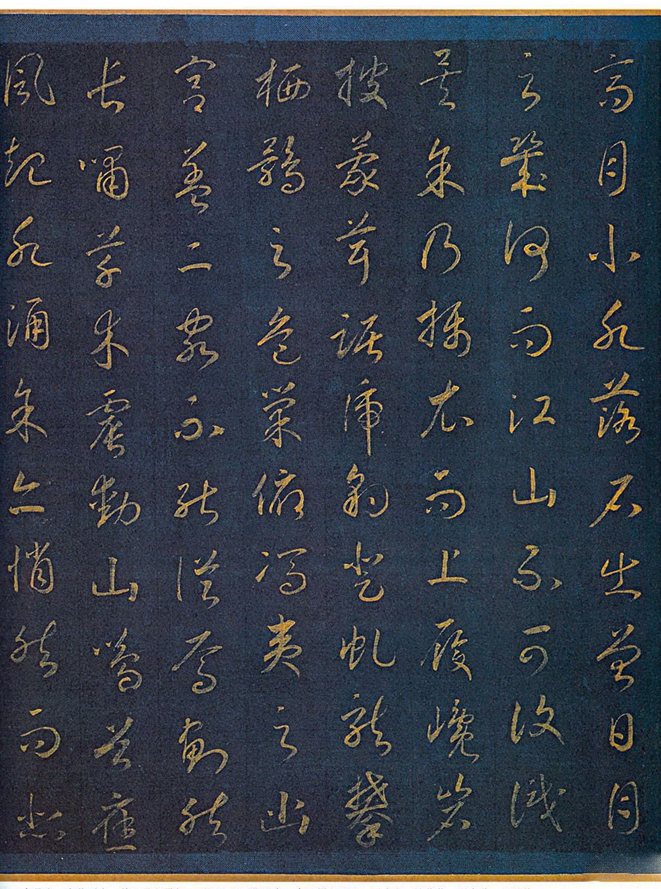 書法欣賞魏晉書法唐朝書法宋朝書法元朝書法明朝書法清朝書法近現代書法字典網>> 歷代書法>> 宋朝>> 趙昚·草書後赤壁賦卷(3)正文 趙昚·草書後赤壁賦卷(3)作者:趙昚 書體:草書 首 頁 上一頁 1 2 3 4 5 下一頁 尾 頁趙昚的相關書法作品:趙昚·池上詩團扇 趙昚·草書後赤壁賦卷 趙昚·漁父詩團扇 相關文章:王澍草書《臨古法帖》 (草書)王澍《臨古法帖》紙本草書 139×69cm 吉林省博物館藏 釋文:遠近清和,士...蘇軾行書《寶月帖》 (行書)蘇軾《寶月帖》 書於1065年(治平二年) 行書,藏台北故宮博物院。曾編人《蘇氏...周儀《桃花源記》 (小楷)周儀《桃花源記》,小楷。現藏愛爾蘭都柏林市切斯特·比蒂圖書館。此作題於顧符稹《...張照行書《臨宋人八書卷》 (行書)張照《臨宋人八書卷》絹本行書 22×302cm 吉林省博物院藏 釋文:略【資料...陳洪綬《行書七絕詩》扇面 (行書)陳洪綬《行書七絕詩》扇面 金箋 約順治六年(約1649)武漢文物商店藏釋文:享盡...李斯《琅琊台刻石》 (篆書)琅琊台刻石 故宮博物院藏拓本秦始皇二十八年(公元前219年),始皇東巡所到之處多...汪士慎隸書《詠牽牛花軸》 (隸書)汪士慎《隸書詠牽牛花軸》紙本隸書 98.5×37cm 上海博物館藏釋文:竹樹交...啟功書宋伯仁《柬趙監鹽》 (行書)釋文:西風吹破黑貂裘 多少江山惜倦遊 紅葉已霜天欲雁 綠簑初雨客吟秋 宋人小詩 ...陳植行書《致金問尺牘》 (行書)陳植《致金問尺牘》 紙本行書 21.7×15.6cm 香港中文大學文物館藏(北...老舍·華世奎 《南皮張氏兩烈女碑》拓片提字 (楷書)釋文:華世奎字璧臣祖籍江蘇無錫世居天津自幼勤學三十歲中舉同年步入仕途出任內閣閣丞...